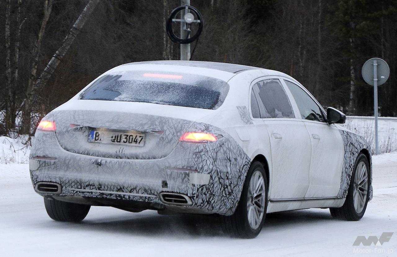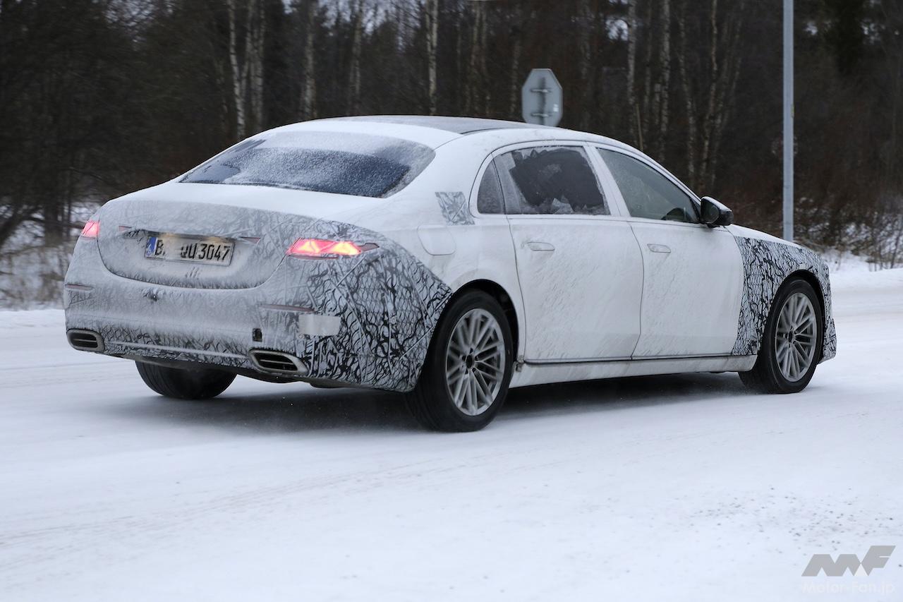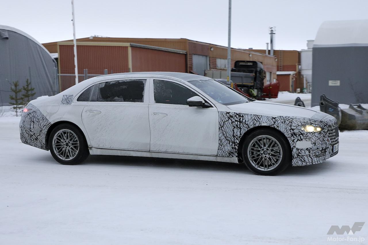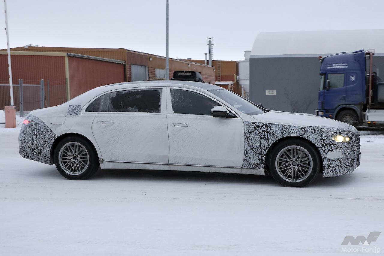 厳冬のスウェーデンで捉えたプロトタイプは、ボディ前後をカモフラージュ。そこが重点的に改良されることを示唆している。フロントエンドでは、3つの星のLEDグラフィックを組み込んだ新しいヘッドライトが装備される。また、マイバッハ特有のパターンを持つ大型のグリルが下部まで巨大化されていることがはっきりとわかるほか、派手なバンパーインテークが加わると思われる。