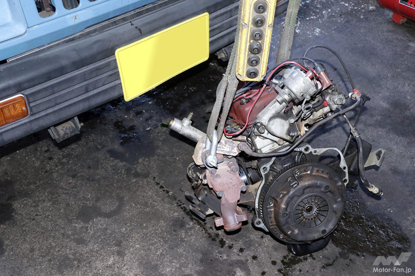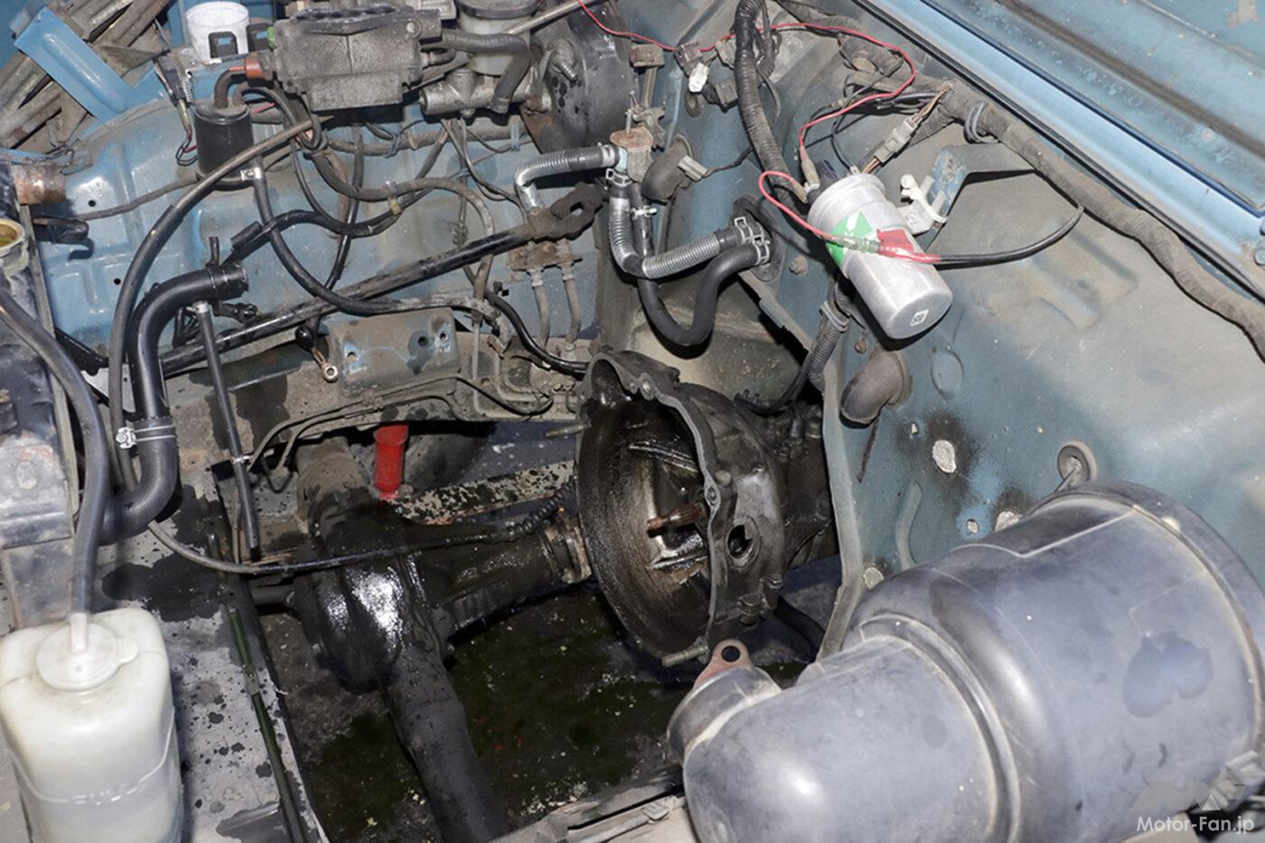 さて、走行距離も13万kmを超え、排ガスにオイルの燃えたような匂いがする。どうしたものかと考えていると、「F5Aの調子の良いエンジンが見つかりましたよ」と連絡が来る。「よぉし!エンジンごと載せ換えてしまえ!」