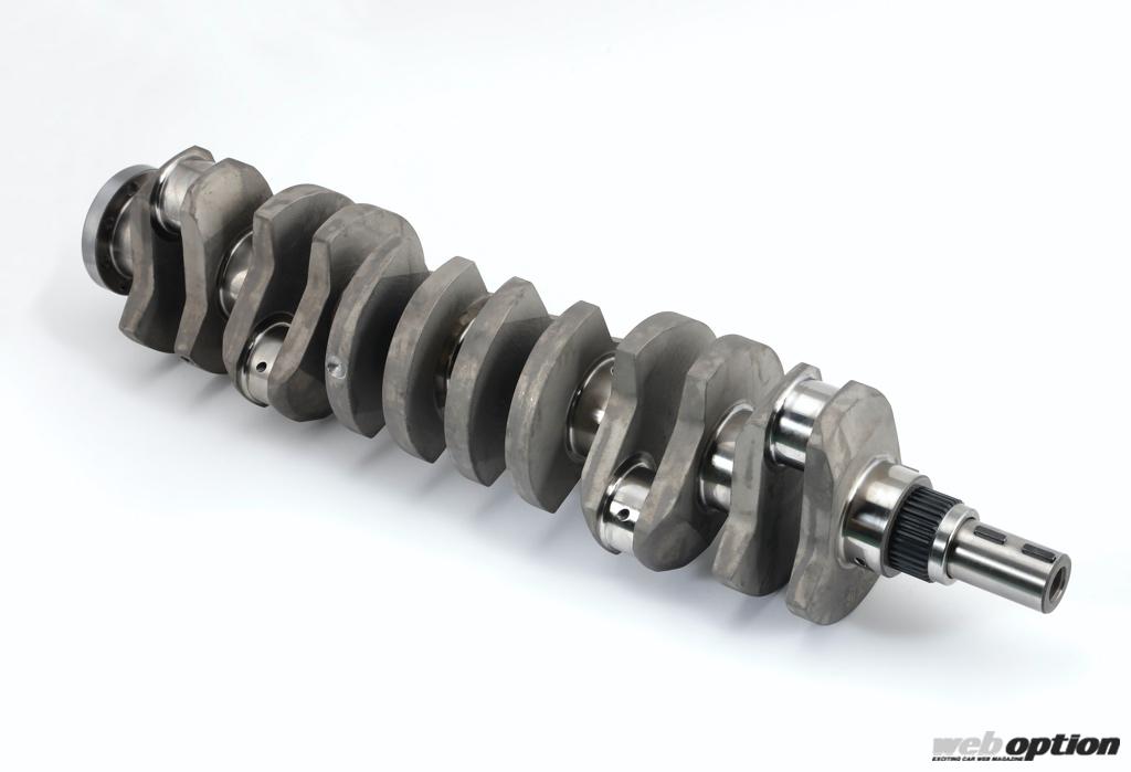 そして、100mmストロークの要となるクランクシャフトは、ニッケルクロムモリブデン鋼から削り出したフルカウンタータイプとしている。純正よりも重くなるが、これは1000ps級の高出力に耐える剛性を確保したかったからに他ならない。ピン径&ジャーナル径は純正とイコール。開発が想定しているレブリミットは7800rpmだ。