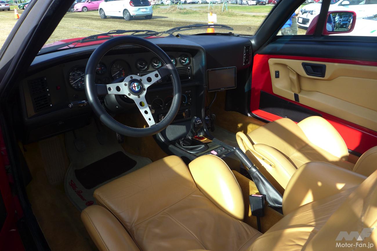 インストゥルメントパネルやダッシュボード、ドアのトリムは、フェラーリに使われるのと同じ高品質なレザーが奢られており、計器パネルは当時は珍しかったCFRP製を採用する。なお、工場出荷時にはザガートデザインのステアリングが装着されていたはずが、イタリアン・ポジションの補正のためだろうか? 撮影車はオーナーの好みでMOMO製の市販品に交換されていた。