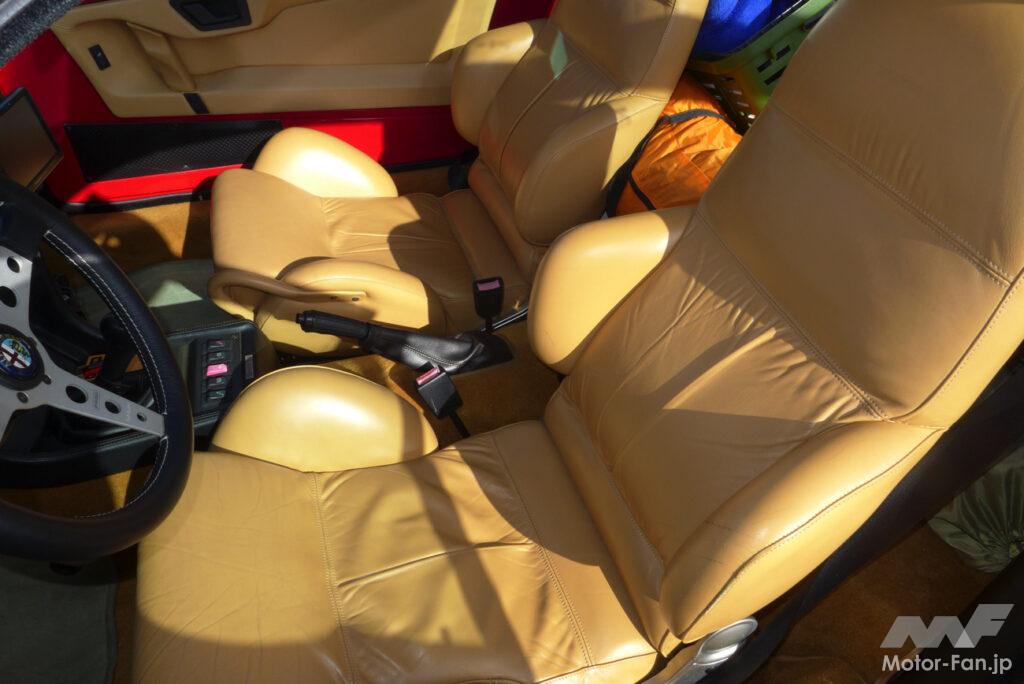 シートはリクライニング機構付きのバケットタイプとなるが、見た目ほどにはホールド性は良くない。だが、シート表皮のレザーはイタリアの高級家具メーカー・プルトローナフラウ製のものが奢られており、シートの掛け心地と風合いの良さからそんな些細なことはどうでも良くなってしまう。ドライバーズシートに腰掛ければふわっと上質なレザーの良い香りが漂ってくるのがまた堪らない。