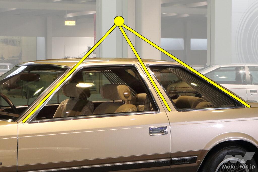 「サイドから見たときのソアラには独自のスタイル理論があり、ひとつはドアガラスとリヤガラスの比率が6:4であることと、フロント、センター、リヤピラーを上方に延長するとひとつの点で交わる。」