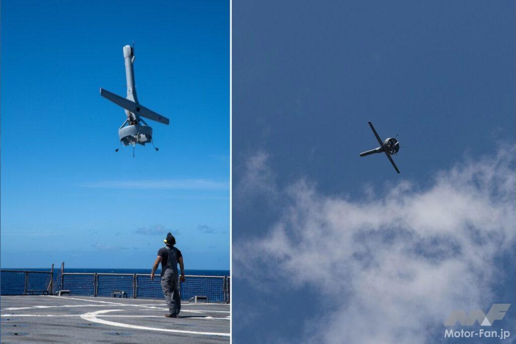 次に、『艦載型UAV(小型)』として、導入される米国シールドAI社製「V-BAT」は、冒頭に掲載した写真のとおり非常に面白いカタチをしている。垂直離着陸能力があり、12フィート四方(3.7m四方)のスペースがあれば運用できるようだ。また、巡航時には横向きとなり、翼で揚力を得て飛行するため、最大10時間もの滞空を可能としている。護衛艦のヘリ甲板で運用が可能であり、警戒監視や情報収集に用いられる。