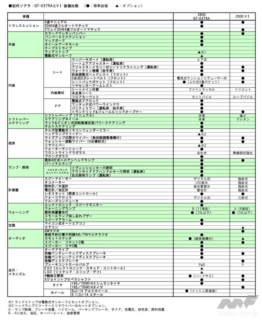 ただし、さきに発表から1年後の改良で2000VIがなくなったと書いたが、この時点で2000VIIはメーターがアナログ式から他と同じエレクトロニック・ディスプレイデジタルメーターに格上げ。つまりアナログメーター付きソアラそのものが約1年間しか生産されなかった勘定だ。