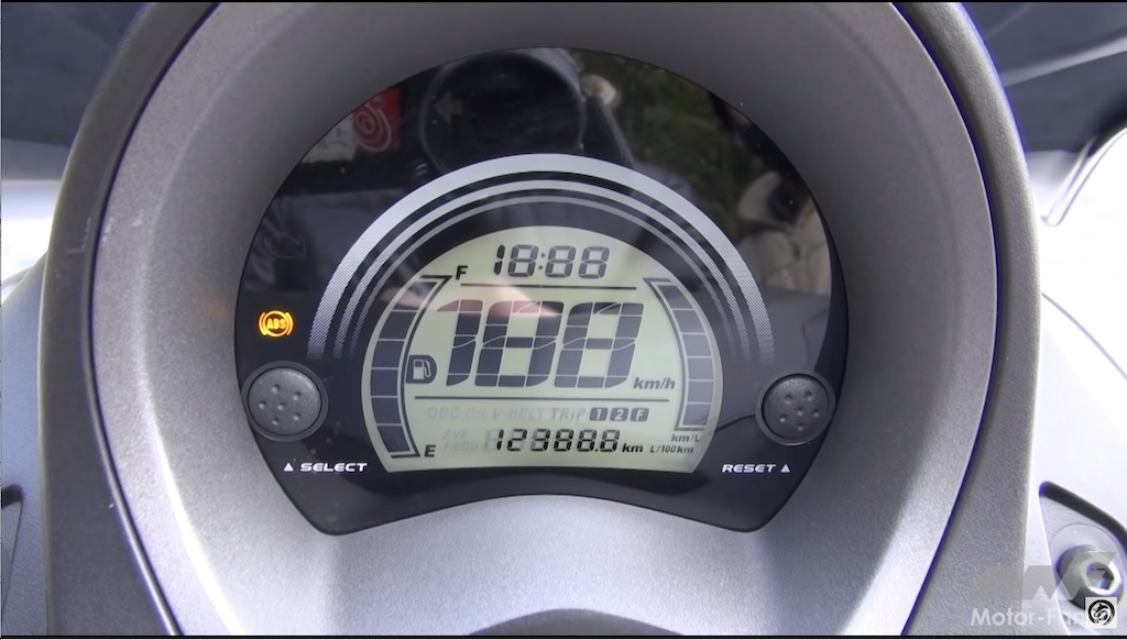 前3車とまったく同じ手法で比較チェックをしている。足つき性は良くホンダ車らしくシートは硬めの印象とのこと。またキーレスを採用しているのでシートの上げ方もADV150同様。フルフェイスを収納しての開閉にもまったく問題はないことを確認できた。オープニングが魅力的なデジタルメーターは視認性が高く編集長のチャボも高評価。さらにポケットや給油口の使い勝手もしっかりチェックしている。