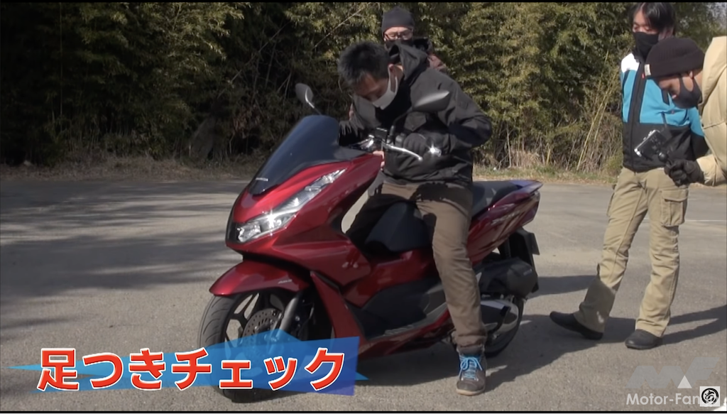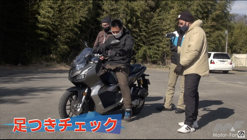 ADV150でも同じ内容のチェックを実施している。まず足つき性でアドベンチャースタイルゆえに悪そうなイメージだが、フロアボードの両サイドが絞られているため実際にはそれほど不安感がないことを確認。シートの持ち上げ方に特徴があるADV150なので、実際にどう操作するかを動画ならではの親切さで紹介。フルフェイスヘルメットは若干シートベースに当たってしまうが、閉まらないことはなかった。またデジタルメーターはインジケーターが別パネルになっているため、差別化がうれしい。