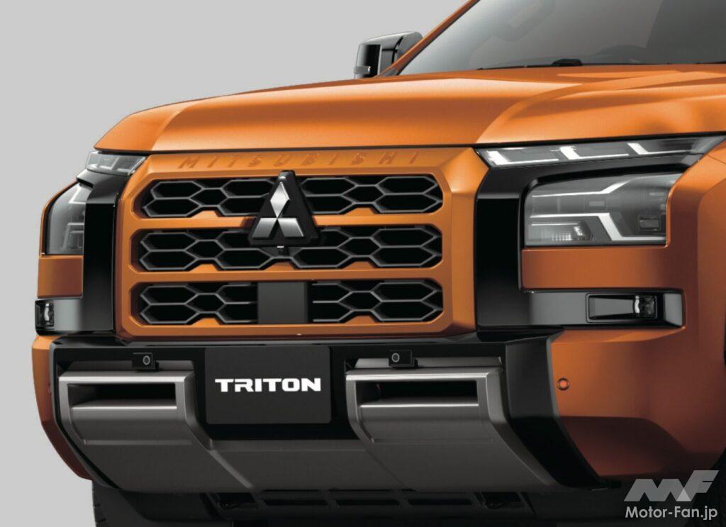 先代アウトランダーやエクリプスクロスはグリルモールを斜めに下げ、左右でハの字を描く。垂直のグリルモールを採用したのは、トライトンの2019年モデルが初めてだ。先代トライトンとフレームを共用してタイで生産するSUVのパジェロスポーツも、2015年登場の3代目でダイナミックシールドを採用したが、グリルモールはハの字だ。