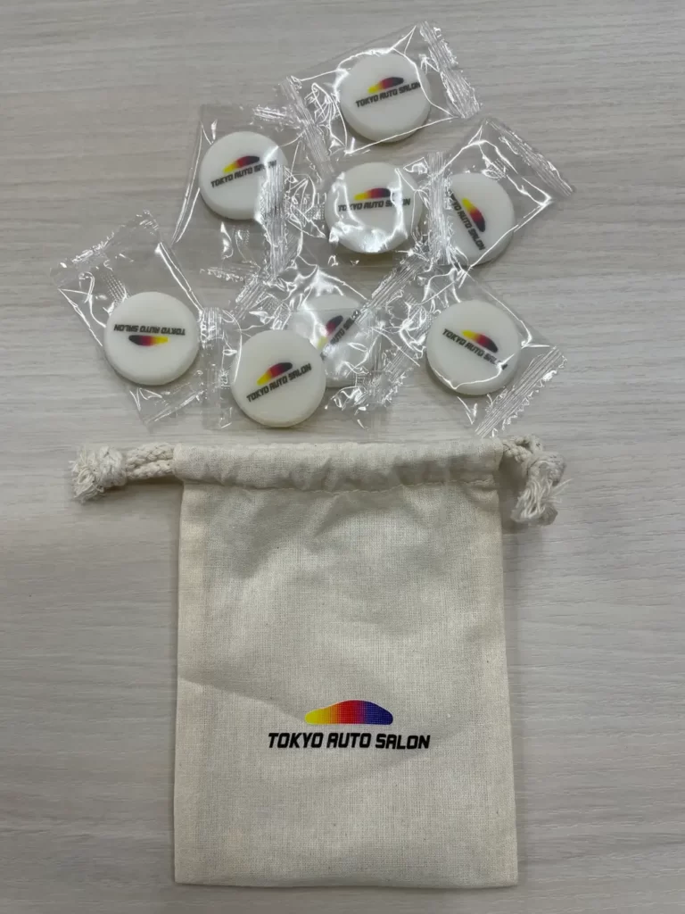 このたび販売予定となっているのは、『巾着×プリントグミ(8個入り/800円)』、『カーボンキーホルダー(1000円)』、『てぬぐい(700円)』、『アイスクリーム スプーン(950円)』、『ペロペロ キャンディ(2個セット/500円)』、『ラムネ(500円)』の6種類。いずれも東京オートサロンのロゴが入ったスペシャルデザインとなっている。また、上記グッズを購入された方には特典ステッカーが進呈される。