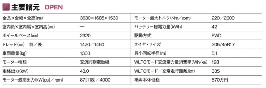 118㎰/220のモーターをフロントに置くFWD車で、リチウムイオン電池の総電力量は42kWh。航続距離は335㎞と短めで、後席も用意されるが、床が高めなので緊急用と割り切った方がいい狭さだ。つまり、500eは街乗り主体の日常パーソナルコンパクトカー的な使い方が想定されている。
