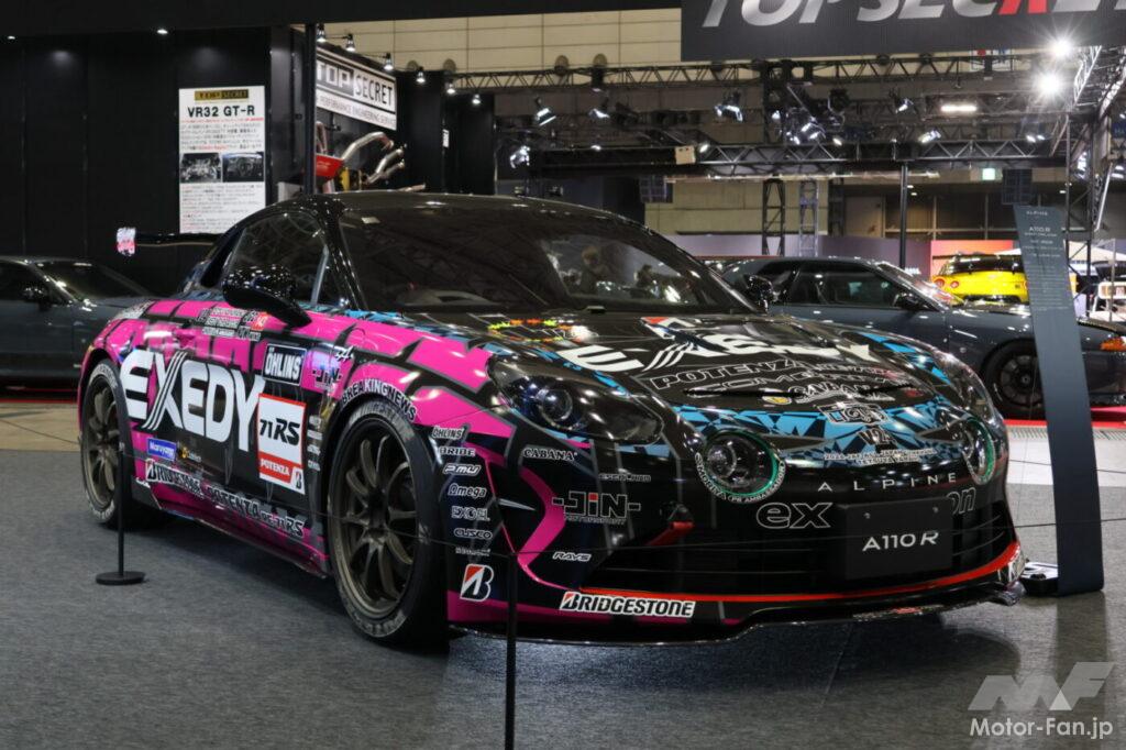 アルピーヌブース内にあってピンクをベースとした派手なカラーリングで眼を引くA110は、山野哲也選手が2024年の全日本ジムカーナ選手権PE1クラスチャンピオンを獲得した「EXEDY 71RS A110R」だ。全部で9戦行なわれたPE1クラスではなんと全勝でタイトルを獲得。ちなみにA110でのチャンピオンは3年連続。そして山野選手に至ってはこれで24度目のジムカーナ選手権チャンピオンという前人未踏の大記録を成し遂げたマシンだ。ジムカーナはナンバー付き車両で争われるとあって、カラーリング以外の外観は市販車と大きく変わることはない。言い換えれば元の車両の素性の良さが現れるということなので、A110Rのポテンシャルの高さを証明する1台なのだ。