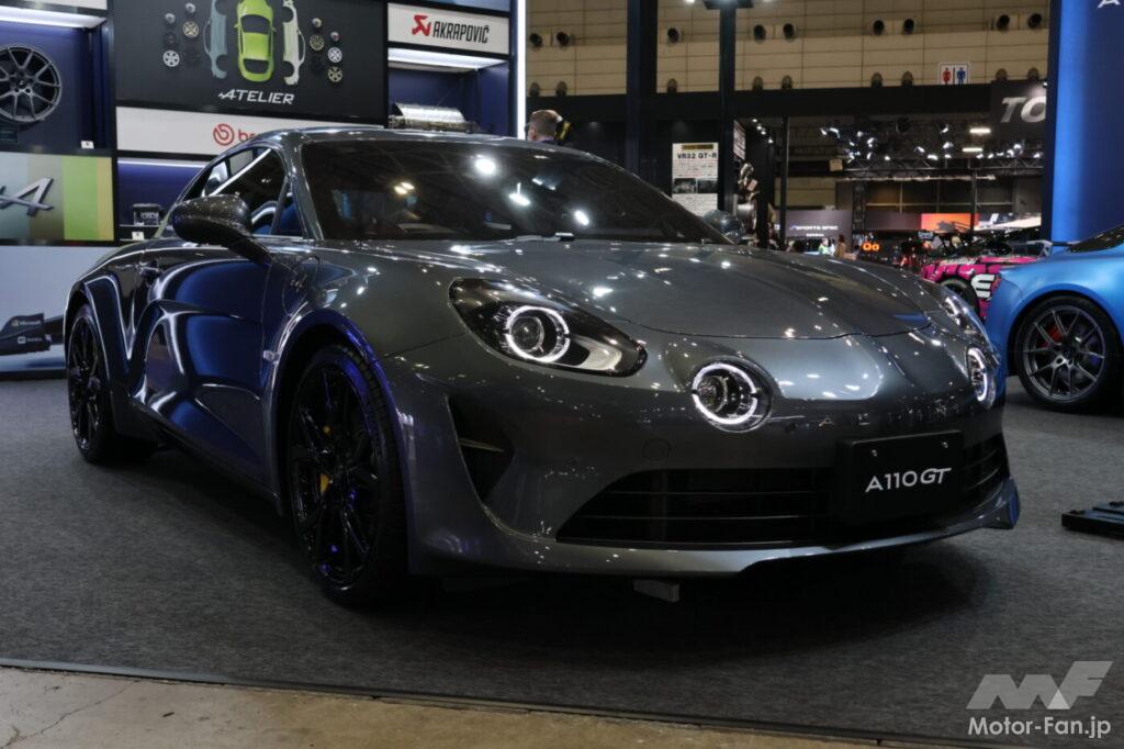 A110のポテンシャルを極限まで磨き上げたのが、A110R TURINIだ。A110Rの「R」は「Radical(過激)」を意味し、カーボン製ボンネット&エンジンカバーやフルカーボンバケットシートで徹底的に軽量化。さらにスワンネックステーのリヤウイングをはじめとする専用のエアロパーツや、車高調整機能&減衰力調整機能付ダンパーを装着した専用シャシーによって、A110のハンドリングを磨き上げた。A110R TURINIは、そのA110Rの走りはそのままに乗り心地に優れたアロイホイールを履かせたグレードである。車両価格は1610万円。展示車両には、オプションのアクラポヴィッチ製チタンエキゾーストや、超軽量のOZ製鍛造アルミホイールが装着されており、A110の究極の姿を披露していた。