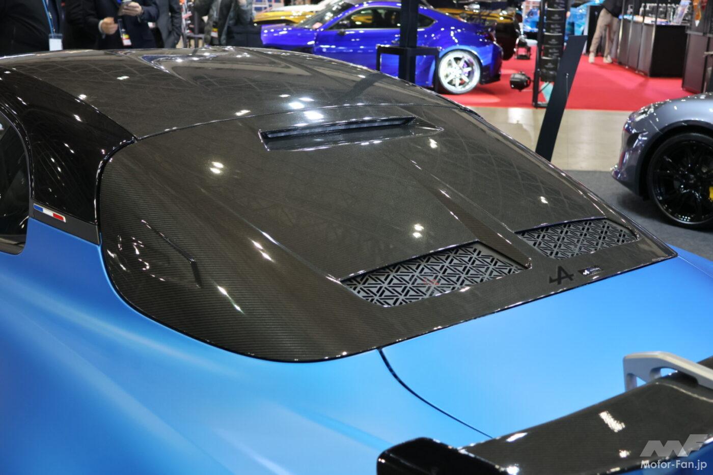 A110のポテンシャルを極限まで磨き上げたのが、A110R TURINIだ。A110Rの「R」は「Radical(過激)」を意味し、カーボン製ボンネット&エンジンカバーやフルカーボンバケットシートで徹底的に軽量化。さらにスワンネックステーのリヤウイングをはじめとする専用のエアロパーツや、車高調整機能&減衰力調整機能付ダンパーを装着した専用シャシーによって、A110のハンドリングを磨き上げた。A110R TURINIは、そのA110Rの走りはそのままに乗り心地に優れたアロイホイールを履かせたグレードである。車両価格は1610万円。展示車両には、オプションのアクラポヴィッチ製チタンエキゾーストや、超軽量のOZ製鍛造アルミホイールが装着されており、A110の究極の姿を披露していた。