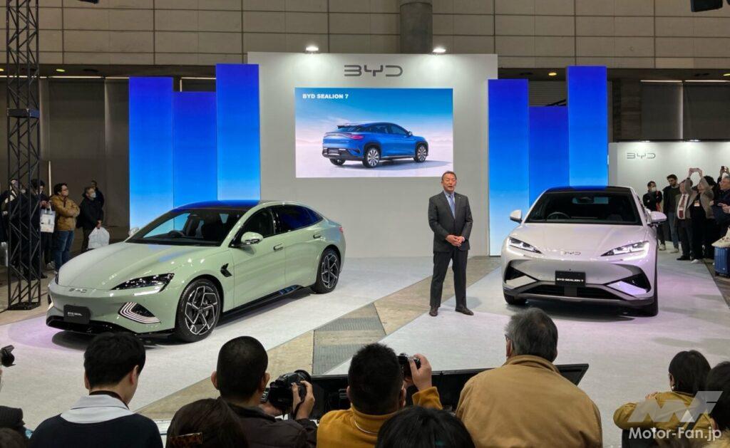 昨年は「シール」が日本カー・オブ・ザ・イヤーで10ベスト入り。販売台数も順調に伸ばしたBYDは、今年も会場に大きなブースを構えた。そして代表取締役社長である東福寺 厚樹氏によるプレゼンテーションでアンヴェールされたのが、クロスオーバーSUVの「シーライオン7」である。