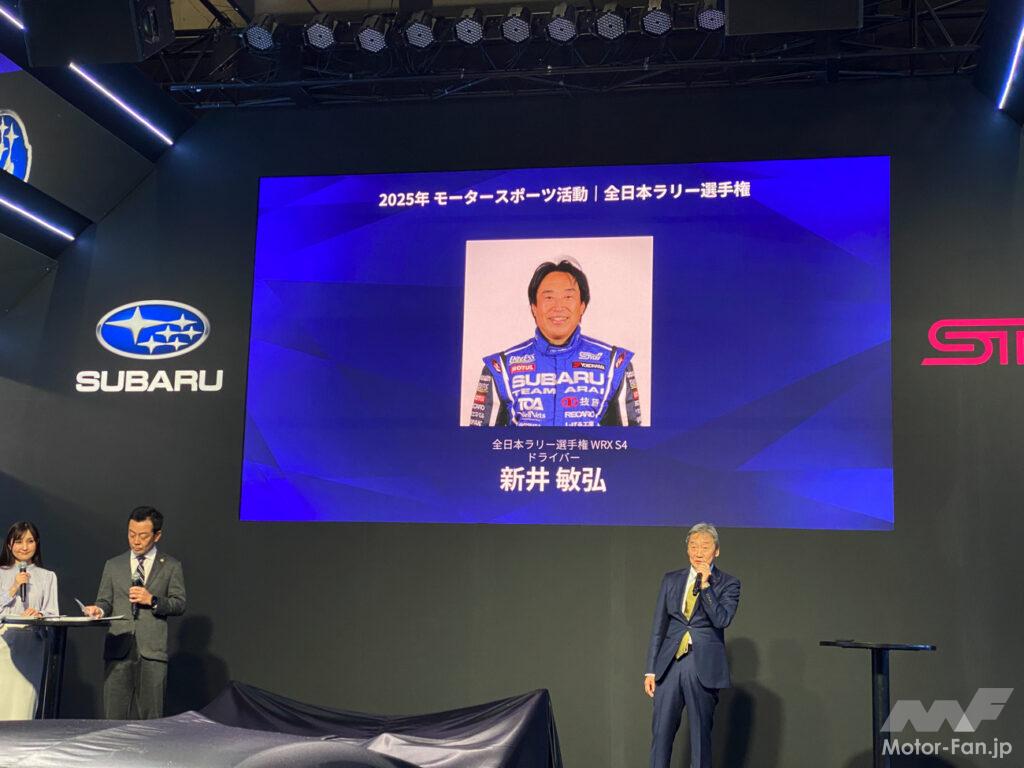 加えて全日本ラリーについての発表もあり、これまでどおりアライモータースポーツを支援し、新井敏弘選手が引き続きWRXをドライブするという。