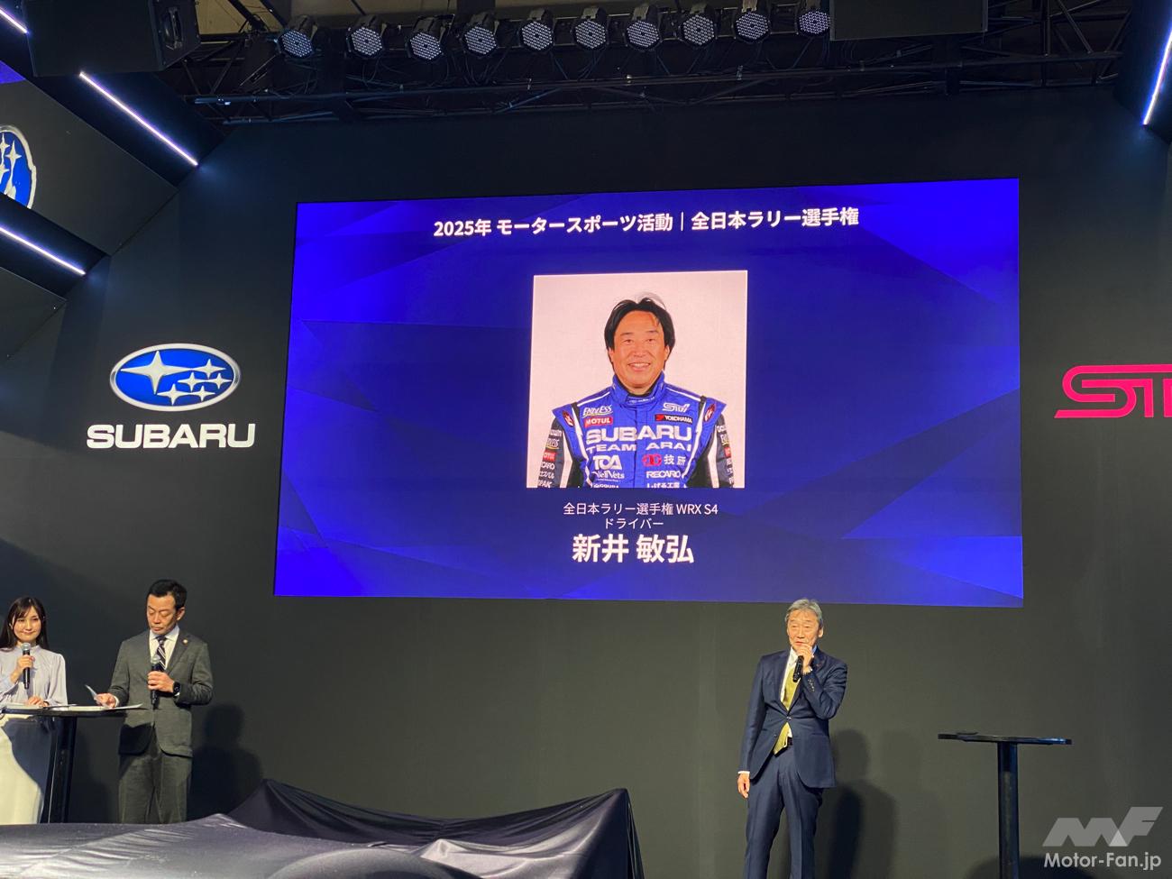 加えて全日本ラリーについての発表もあり、これまでどおりアライモータースポーツを支援し、新井敏弘選手が引き続きWRXをドライブするという。