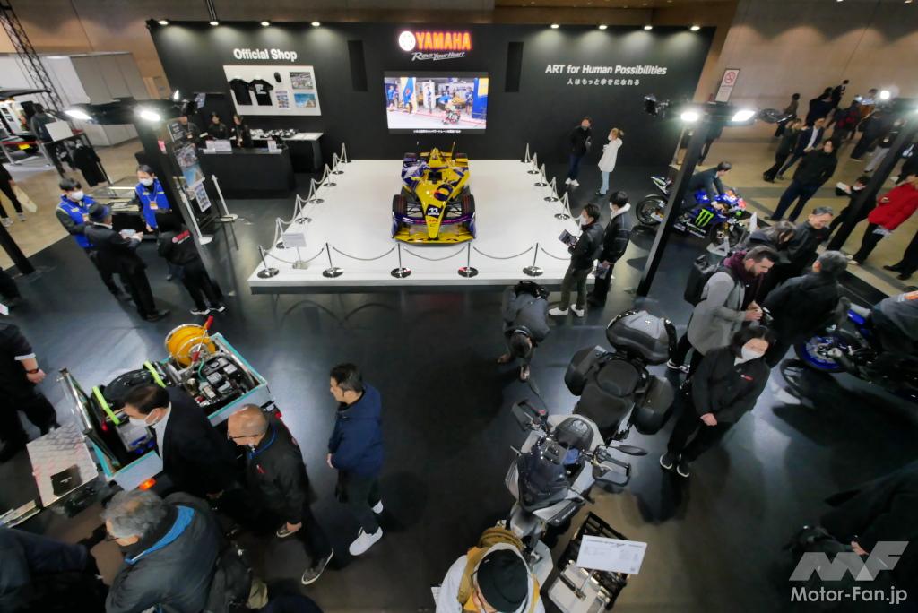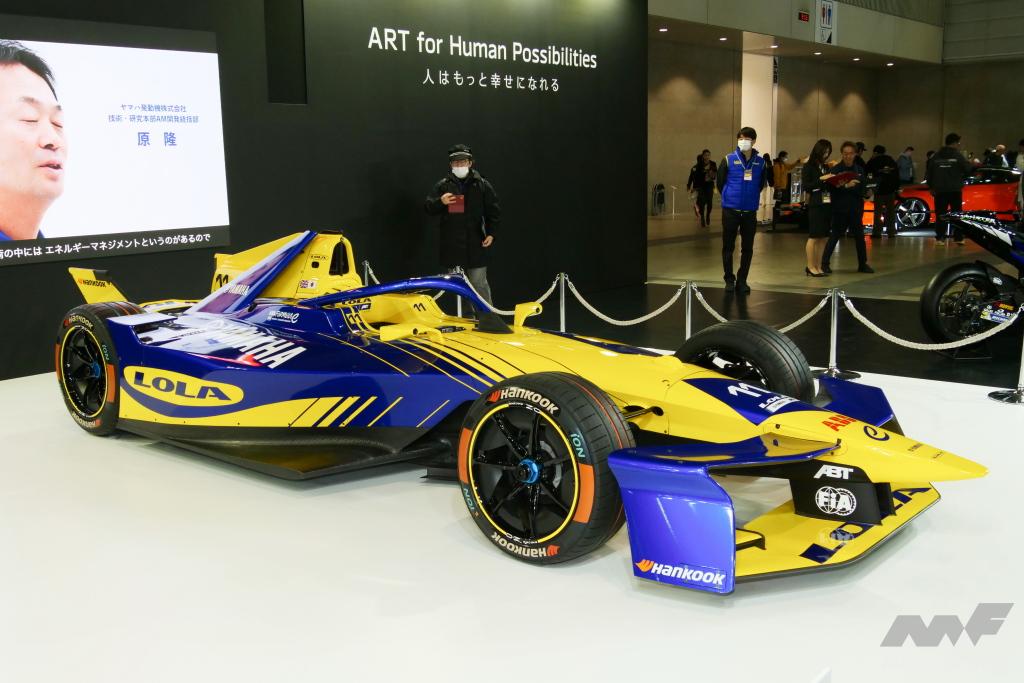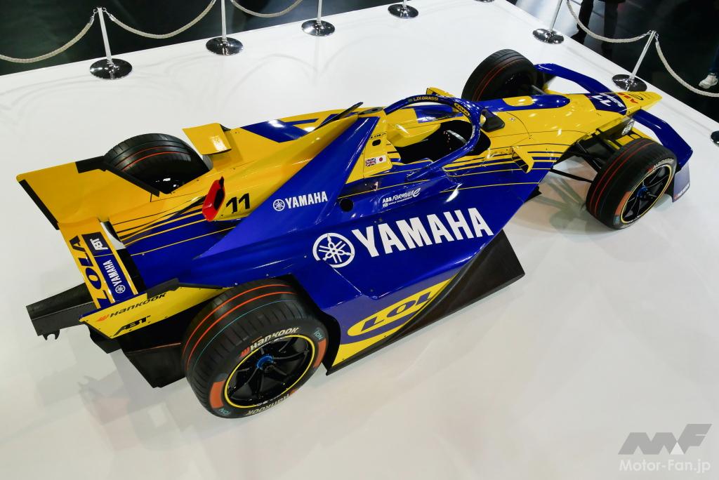 そして、ヤマハがブース中央に展示するのが参戦中のフォーミュラEマシン。かつてヤマハはF1のエンジン供給を行っていたが、今回もそれに近い取り組みで、電動パワーユニット関連を供給する態勢でフォーミュラEに望んでいる。