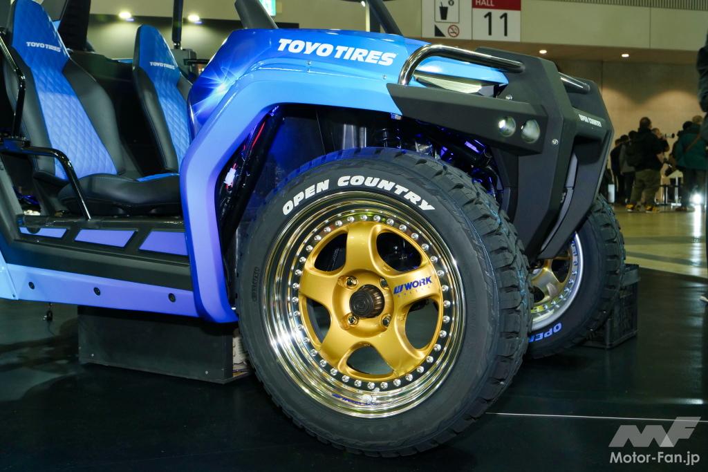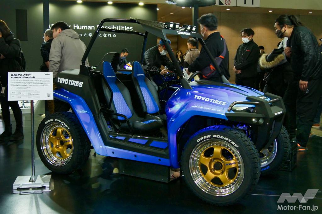 今回は、その「DIAPASON C580」へ、フロントにブルドーザーのようなアタッチメント、そしてリヤにはトレーラーを牽引したものが「DIAPASON C580 Fork 1」。そして、サスティナビリティとオフロードラリーをコンセプトにしたものが「DIAPASON C580 Fork 2」でTOYO TIRESとのコラボとなった。