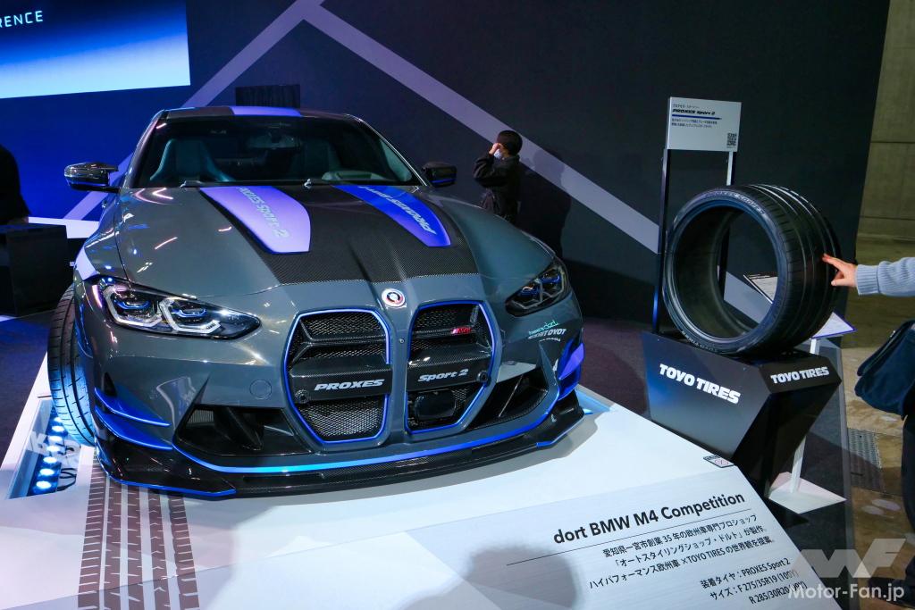 更にその奥にが展示されている「Dort BMW M4 Competition」は、愛知県一宮市の創業35年を迎える欧州車専門プロショップ「オートスタイリングショップ・ドルト」にて製作された。ヨーロッパのハイパフォーマンスカーの足元を決めるのにPROXES Sport 2が最適解であることへの提案だ。