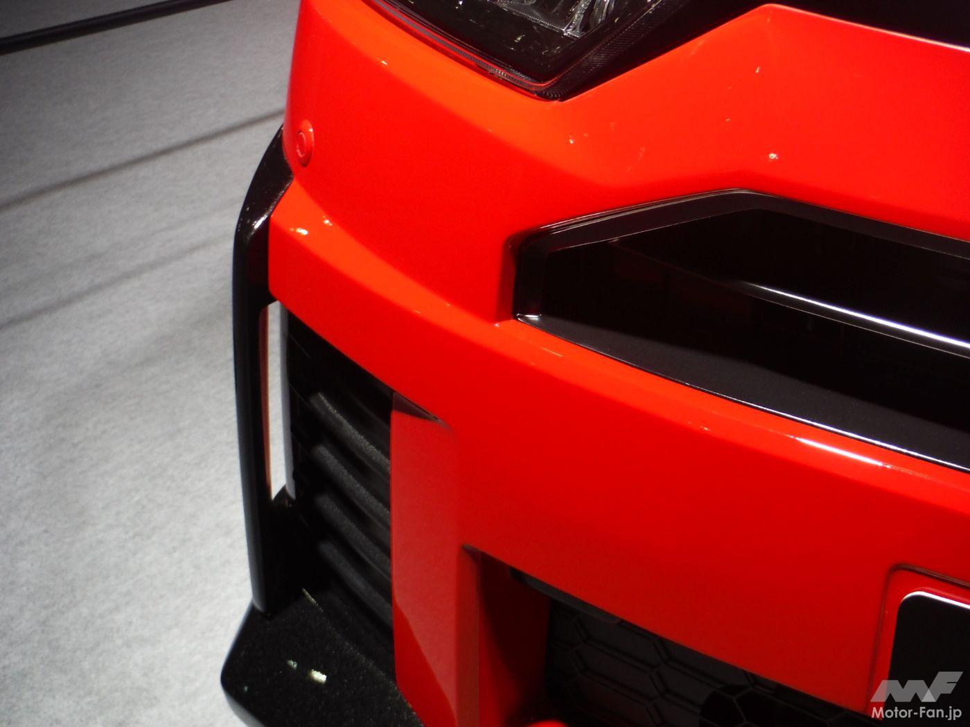 なにより違うのはブレーキで、モータースポーツ参戦車のフロントには6ポットキャリパーと2ピースローターが組み込まれているが、コンセプトカーのほうはオーソドックスな片持ち式キャリパーとなっている。下り最速の遺伝子を受け継いでいるのであれば、ブレーキ性能は最重要項目であり、量産化するにあたっても、そのあたりのグレードアップ対応は期待したいところだが…。