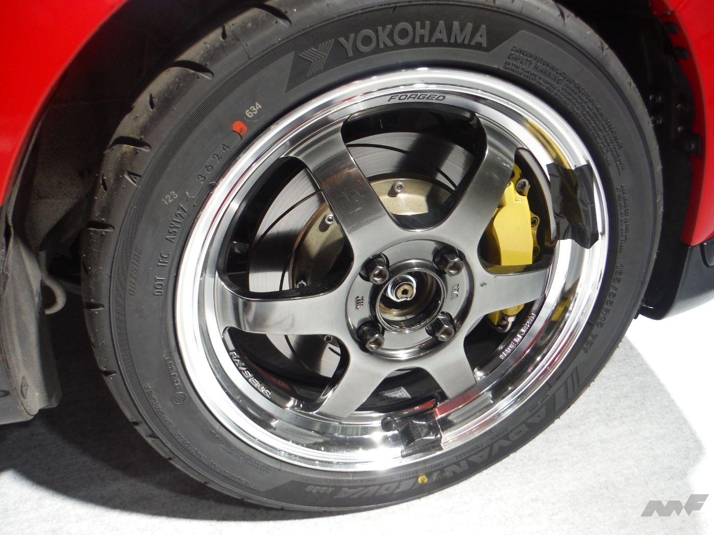 コンセプトカーは16インチBBSホイールを履いているが、モータースポーツ参戦車は15インチのレイズ製ホイール。タイヤサイズもコンセプトカーが165/50R16に対して、モータースポーツ参戦車は165/55R15となっている。