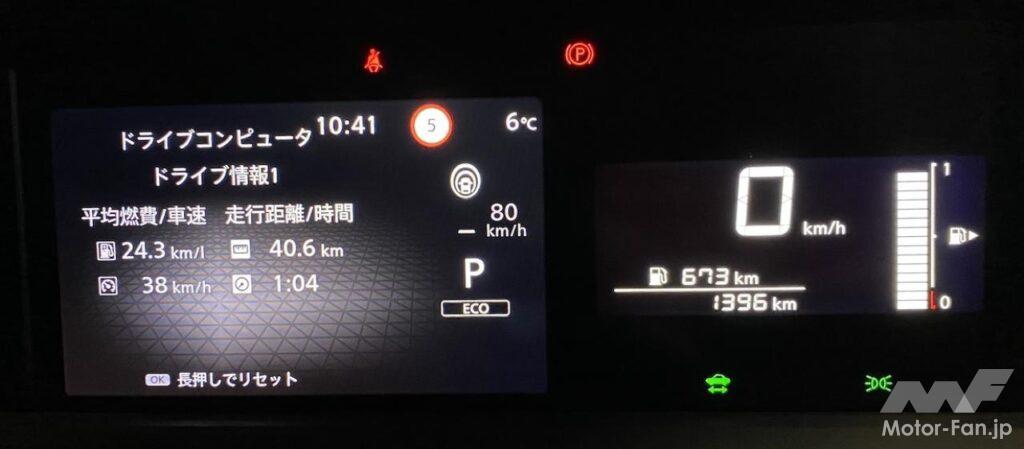 横浜の日産グローバル本社から首都高速に乗って外苑出口で降りて東新宿の編集部まで約40kmを軽く流す。燃費計は24.3km/ℓを示していた。