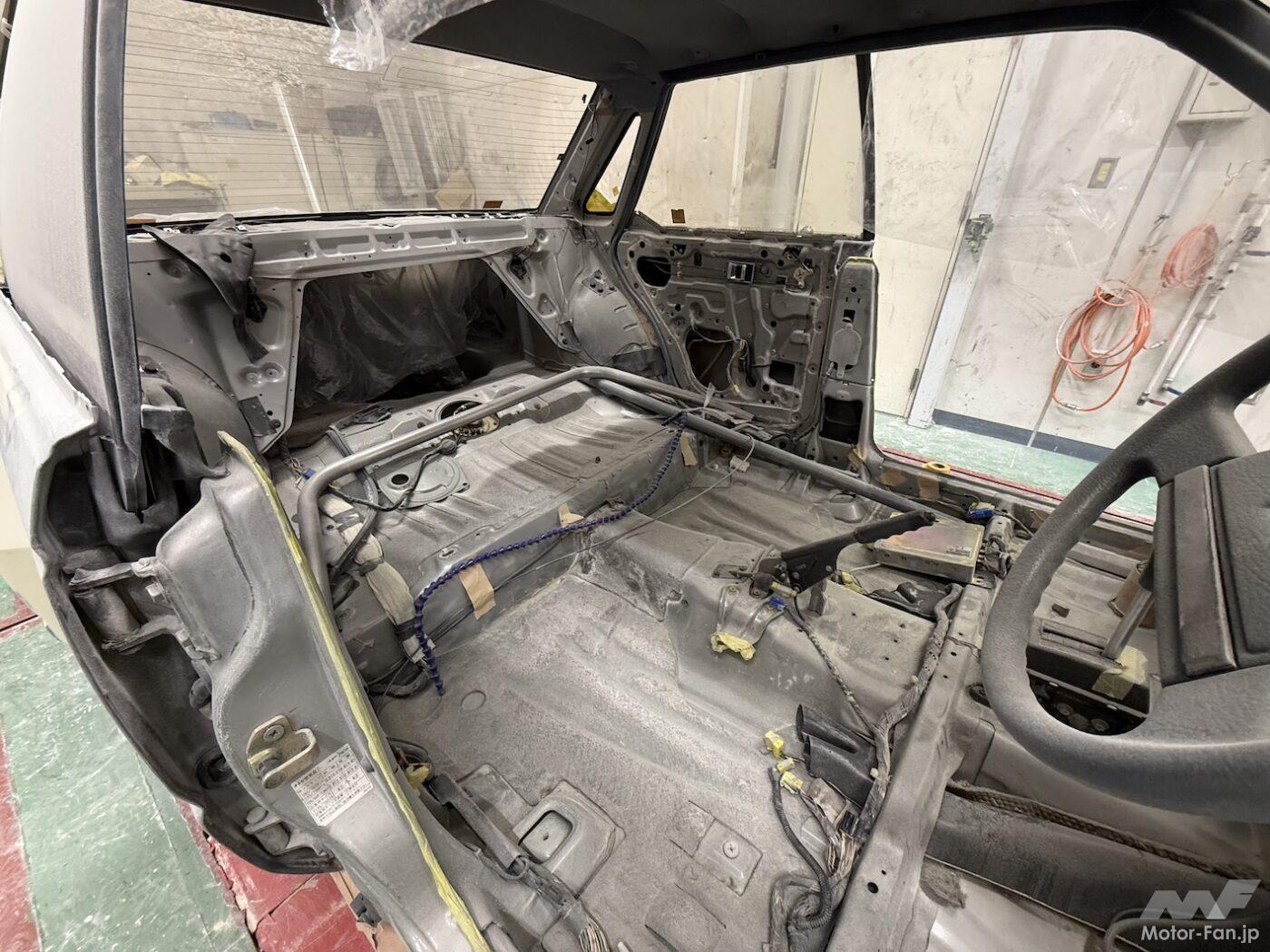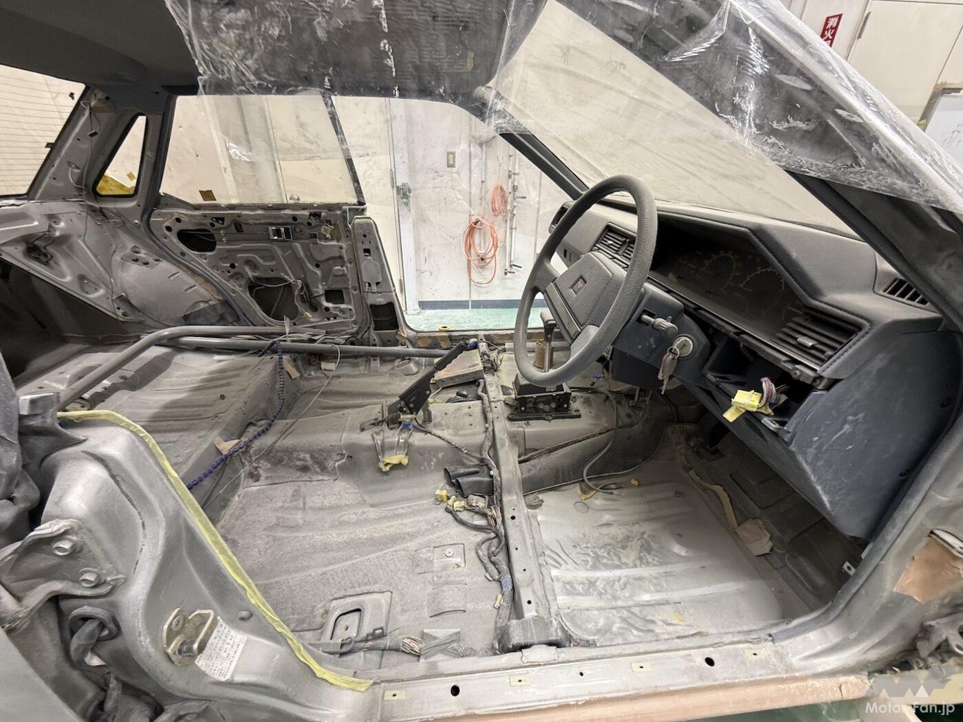 このクルマ、製作には6ヵ月をかけた。ボディからは学生が考えたオリジナルカラーの「トモアキブルー」(芦田ともあき君考案)。ケンメリのブライトブルーメタリックをベースに新たにパールを加えたカラーである。