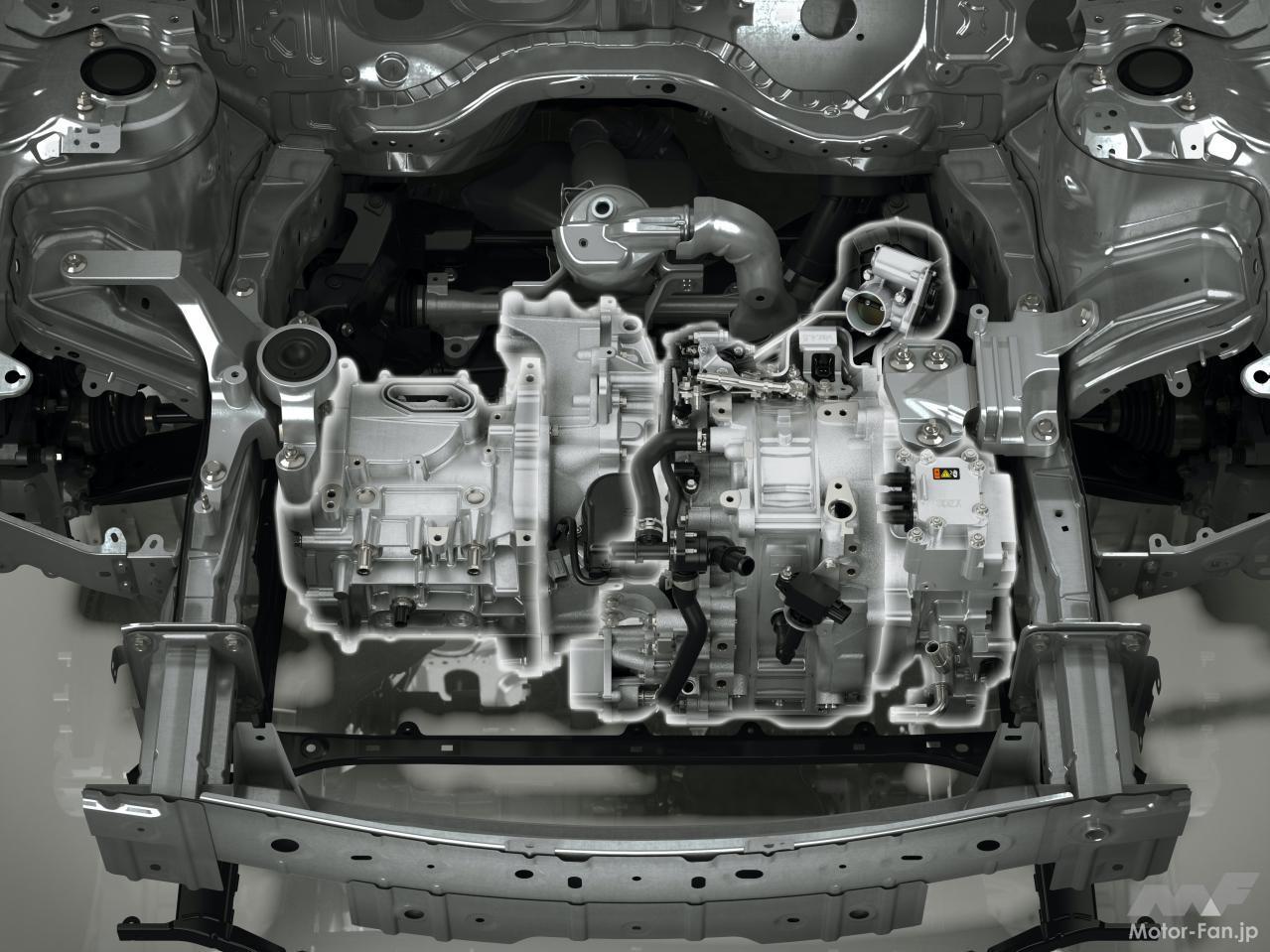 マツダ独自の車両運動制御技術、Gベクタリングコントロール(GVC)は、モーターのトルク特性を生かしてより幅広い領域で最適な前後荷重移動(ボディコントロール)を実現するe-GVC Plusへと進化した。内燃機関との比較では、ターンアウト時の制御やアクセルオフ時の制御においてモーターに分があり、ターンインからターンアウトまで、すなわちアクセルオンからアクセルオフまで、あらゆるシーンで前後荷重移動を狙いどおりに制御できるようになった(あくまでFFのクルマとしての範ちゅうで)。