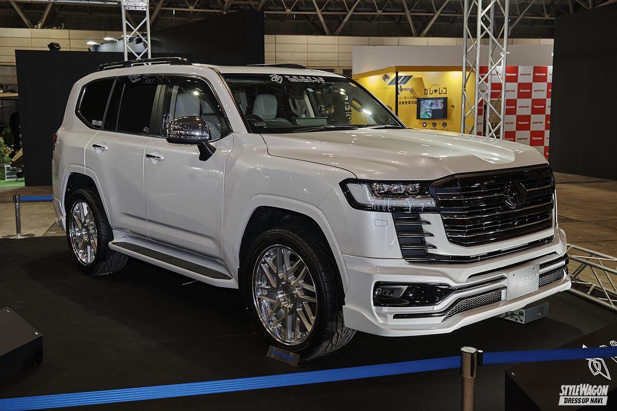 あまりの人気の高さから、納期は4年待ちとも言われているランクル300。そんな中、新車コンプリートカーや各種カスタマイズを手掛ける名古屋のGMGでは、3台ものランクル300を東京オートサロンに一挙投入!それぞれに異なったアレンジで、自社オリジナルブランドであるダブルエイトの新作アイテムを披露している。
