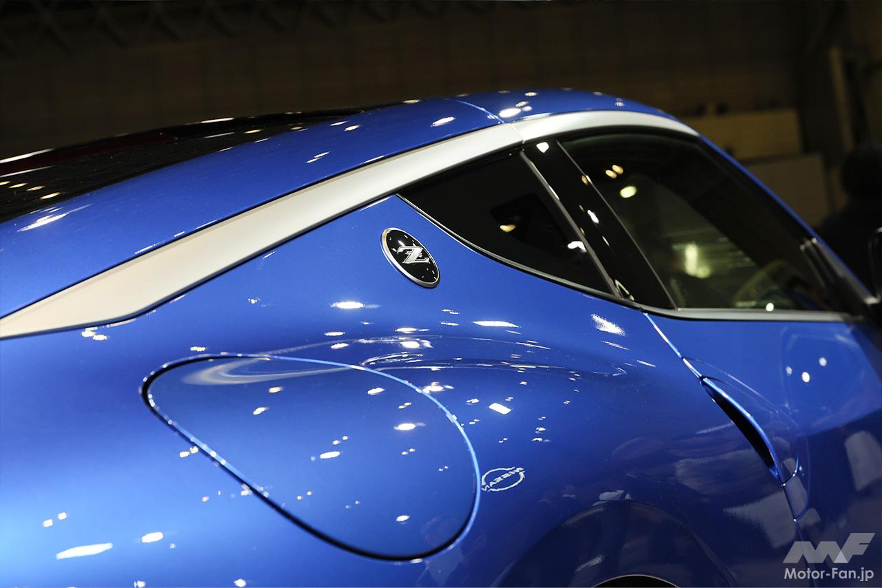 その2025年モデルは「SOSコール」が全車標準装備されるとともに、ボディカラーが一部変更されたのが大きな目玉。現行R35型GT-Rの2020年モデルより設定されている「ワンガンブルー」がRZ34のラインナップにも加わり、東京オートサロン2025の日産ブースでは多くの来場者から熱い視線を浴びていた。