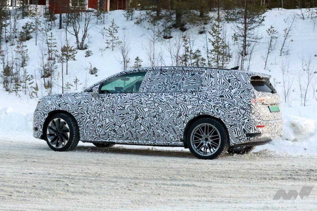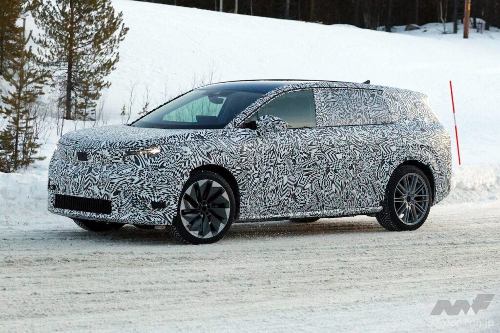 豪雪のスカンジナビアで捉えたプロトタイプは厳重に偽装されているが、モダンソリッドデザインを採用していることがわかる。詳細は判別しにくいが、後退へ伸びるヘッドライトを備える、丸みを帯びたフロントエンドが見えるほか、中央の大きな吸気口と角張ったエアカーテンがこれらを繋いでいる。