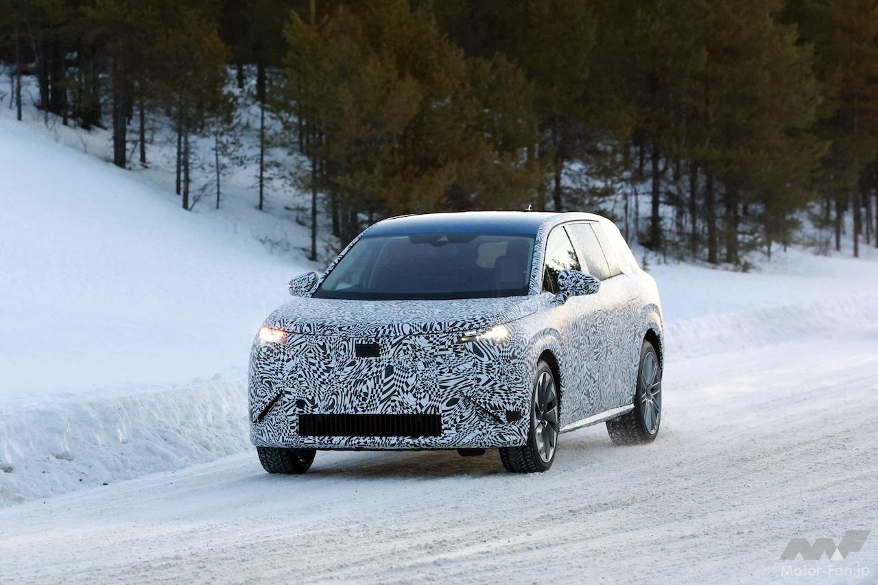 豪雪のスカンジナビアで捉えたプロトタイプは厳重に偽装されているが、モダンソリッドデザインを採用していることがわかる。詳細は判別しにくいが、後退へ伸びるヘッドライトを備える、丸みを帯びたフロントエンドが見えるほか、中央の大きな吸気口と角張ったエアカーテンがこれらを繋いでいる。