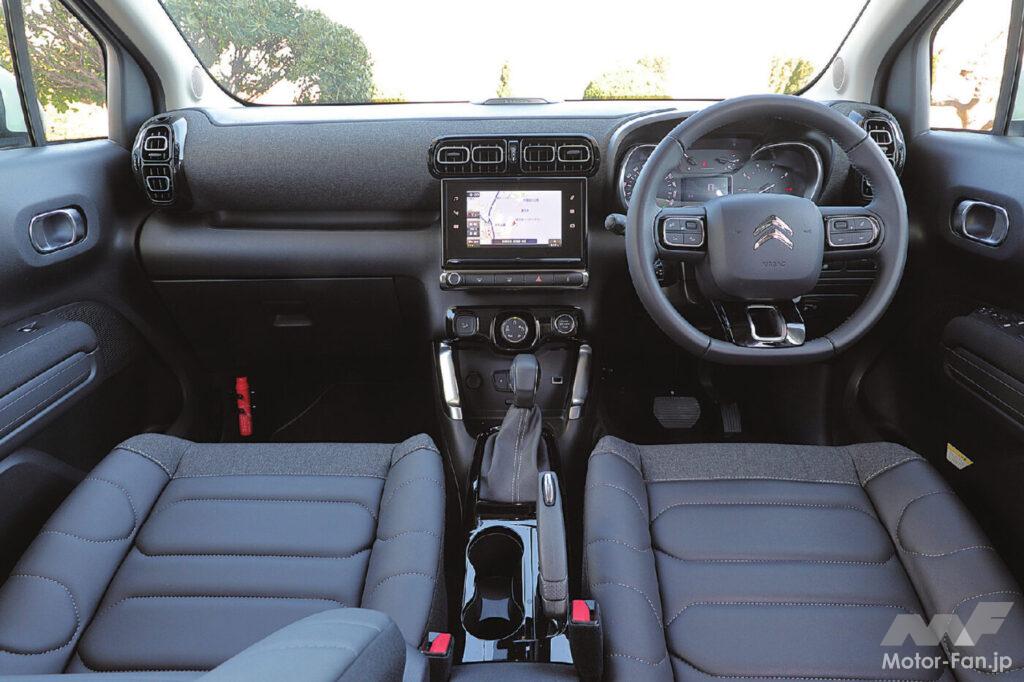 17年に登場して19年には日本にも導入されたのが、「C3エアクロスSUV」である。現在販売されているのは、フロントのダブルシェブロンマークからサイドに伸びた上側がデイタイムライト、下側がLEDヘッドライトへとつながるクロームのラインや、内部ルーバーの縦方向ラインを強調したマスクなど、新たなシグネチャーを象徴する顔つきが特徴の、21年にマイナーチェンジを受けたモデル。