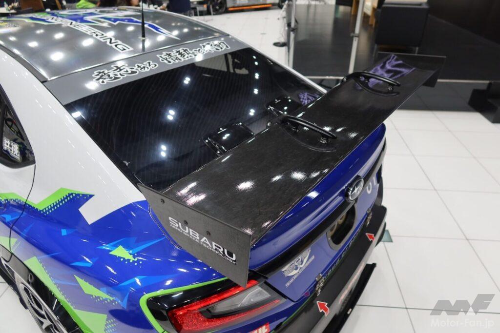 翼端板は「カーボン」と聞いて多くの人がイメージする平織り模様だ。ただし、ただの再生カーボン材ではない。再々生カーボン材だ。破損したBRZのアンダーカバーを原料に炭素繊維を抽出し、もう一度再生させたもの。再生カーボン材を再生させたので、再々生カーボン材というわけである。「何回も使うことにトライしたい」と再生カーボン材の開発に携わる技術者は力を込めて言った。