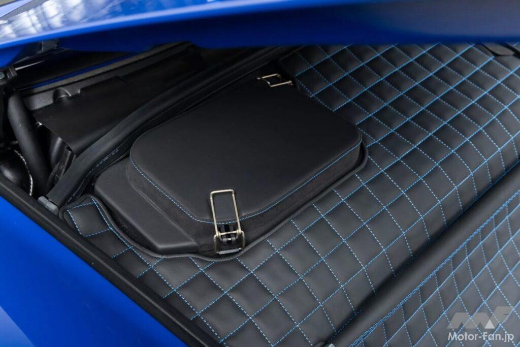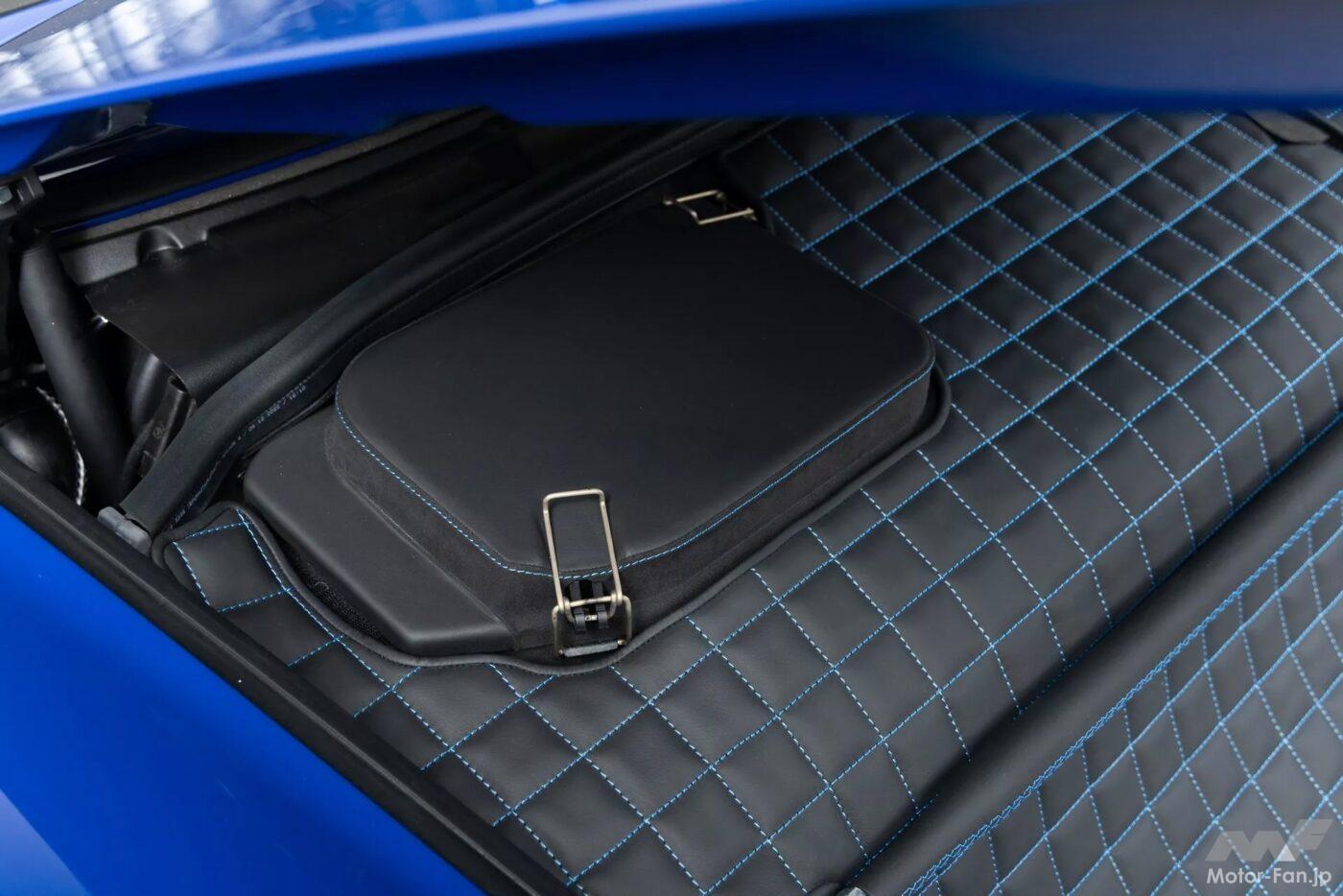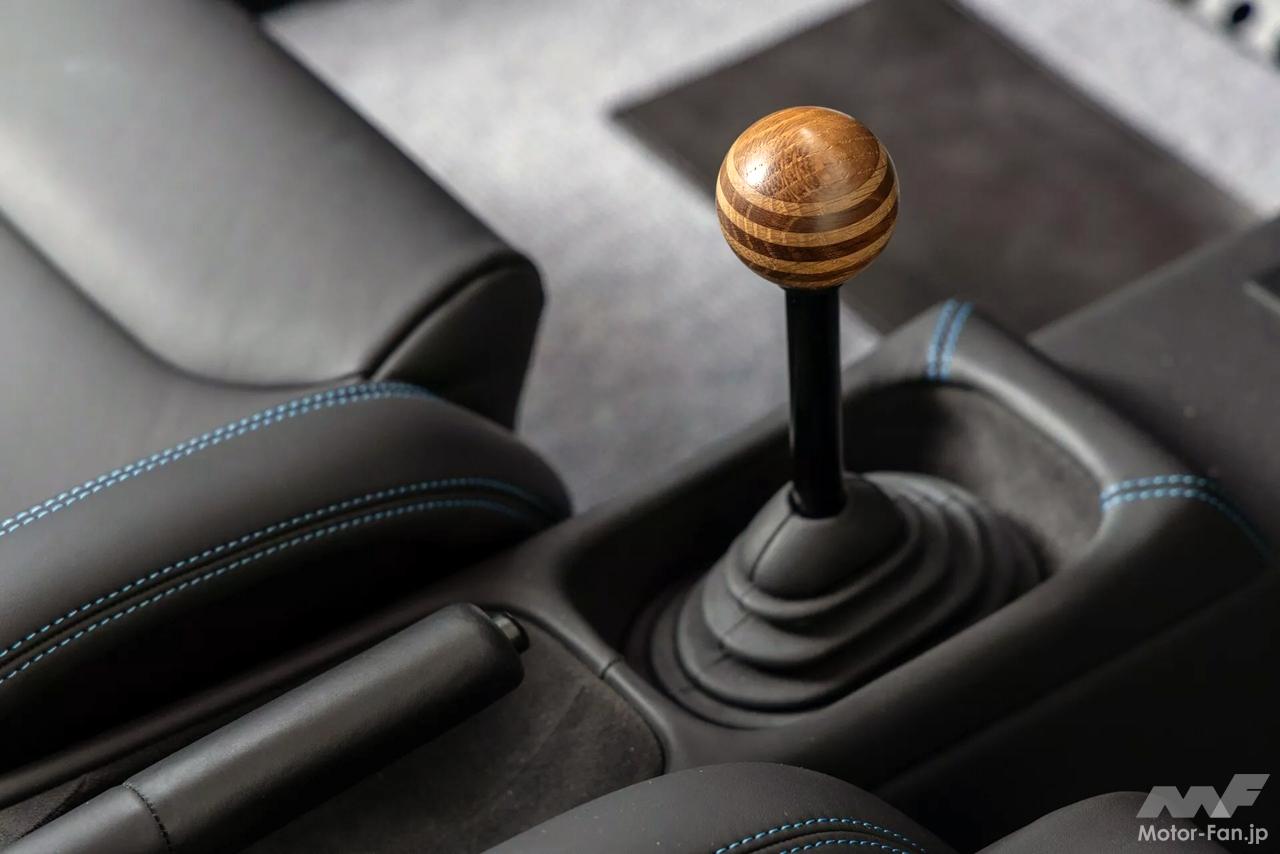 キャビン内もエクステリアと同様に素晴らしい仕上がりだ。レカロスポーツスターCSシートが2つ付けられ、青いコントラストステッチが施された黒いレザーで仕上げられている。黒いレザーと青いステッチは、ドアパネル、ステアリングホイール、ダッシュボードにも採用されており、明るい青のアルカンターラは、ダッシュボードの他の部分、ピラー、ヘッドライナーにも使用されている。
