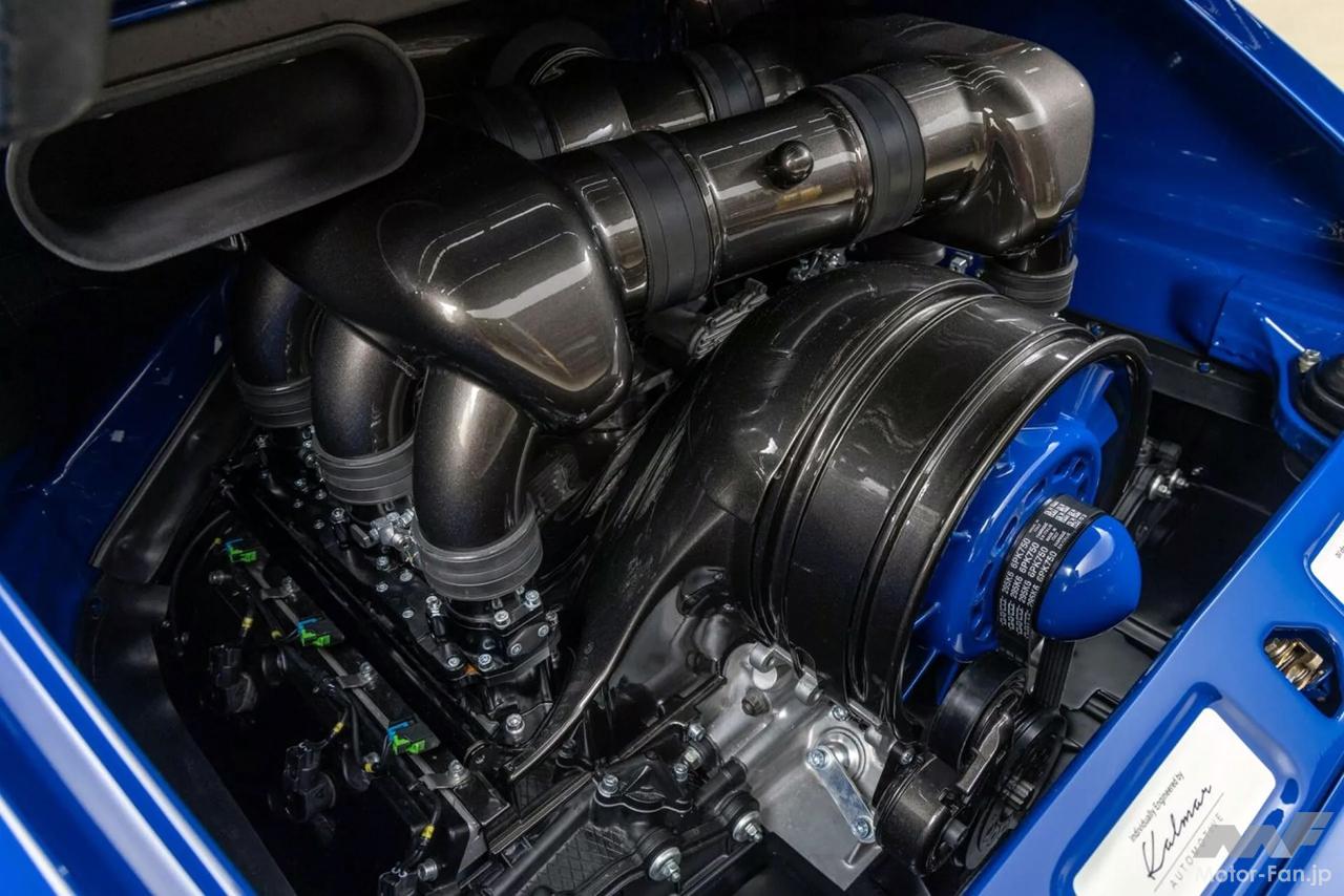 エクステリアでは、カーボンファイバーで作られた、まったく新しいボディパネルに注目だ。鮮やかなSunoco Blueで塗装されており、レトロでありながら新鮮さも感じられる。