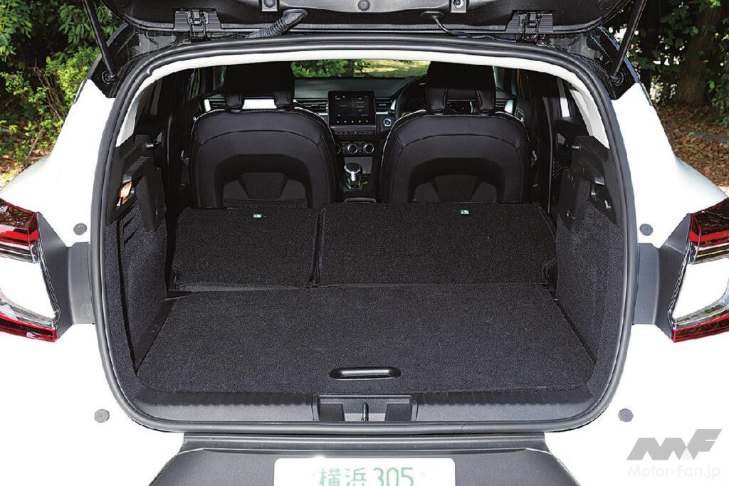 「E-TECHフルハイブリッド」は独自のドッグクラッチ機構を使い、シンプルかつ高効率なのに、エンジン単体、モーター単体、パラレル、シリーズのあらゆる走行モードが可能。実際の走行感覚もドッグミッションという言葉から想像できないほどスムーズでシームレス。22.8㎞/ℓというWLTCモード燃費は、共通のパワートレインを使うルーテシアやアルカナと並んで「低燃費輸入車」の1〜3位を独占する。街中でも燃費良好だが、高速燃費ではさらに光る点はいかにも欧州車らしい。