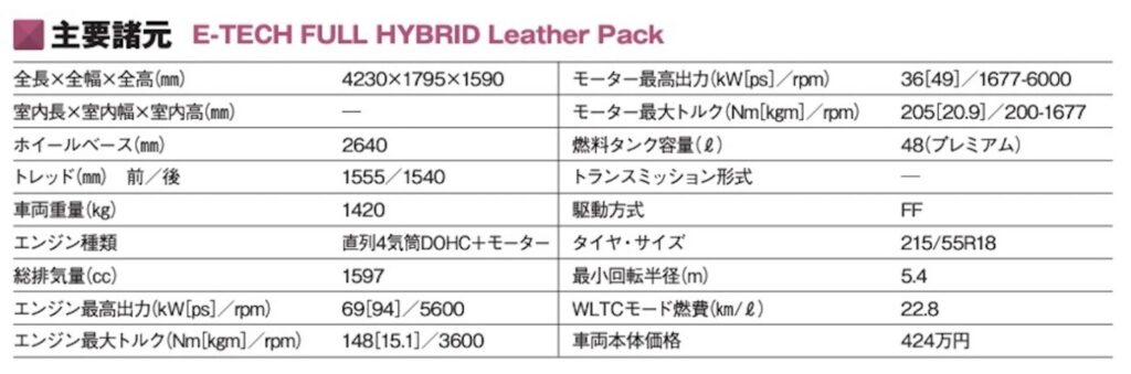 WLTCモード燃費 22.8 ㎞/ℓ※「E-TECH FULL HYBRID」系