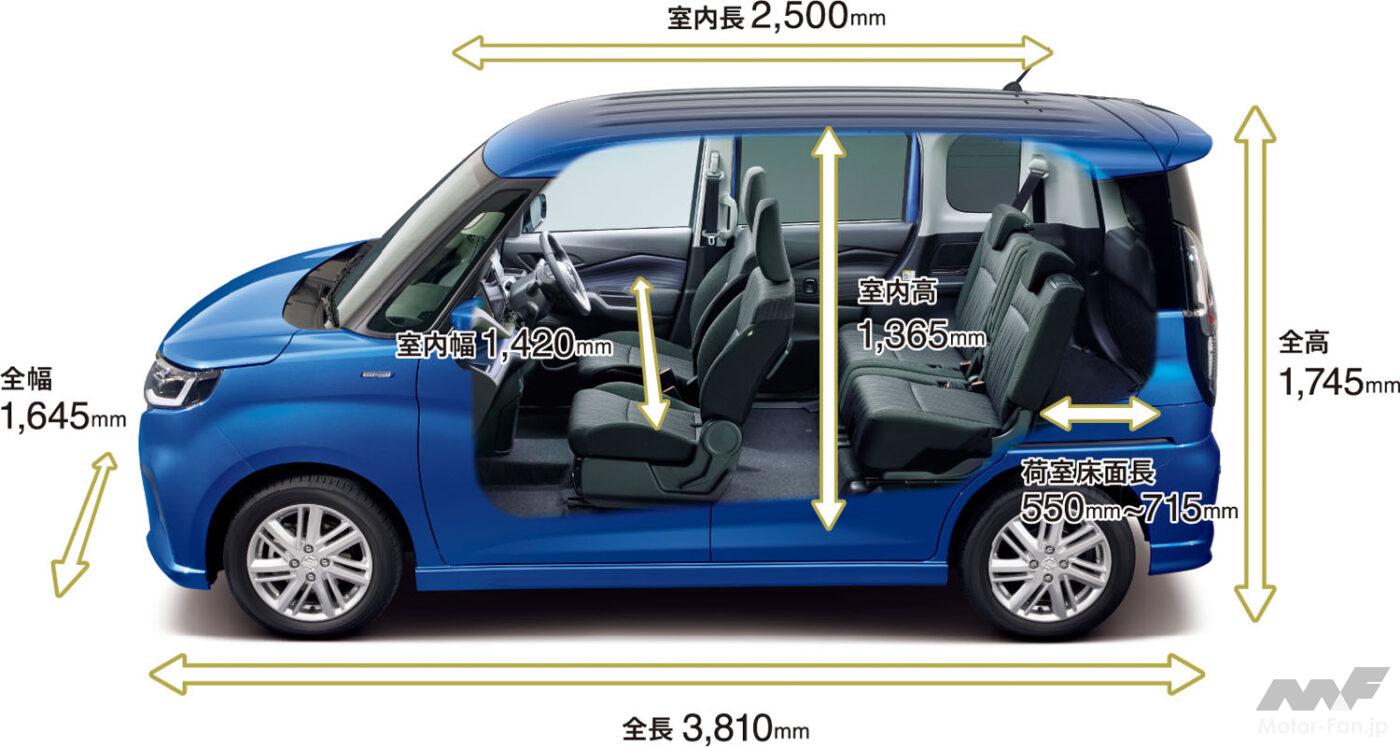 こうした利便性の高さを誇る一方で、前席は左右間と前後間のウォークスルーを可能にするため、座面の前後長とシート幅が狭く感じる。頭上まわりには十分過ぎる余裕が残るが、大柄な人にとっては窮屈さを覚えるかもしれない。前席の快適性も重視したいのなら、より全幅がワイドになるBセグメントのコンパクトハイトワゴンを選択する手もあるだろう。このあたりは、展示車や試乗車で座り心地を念入りに確認しておきたい。