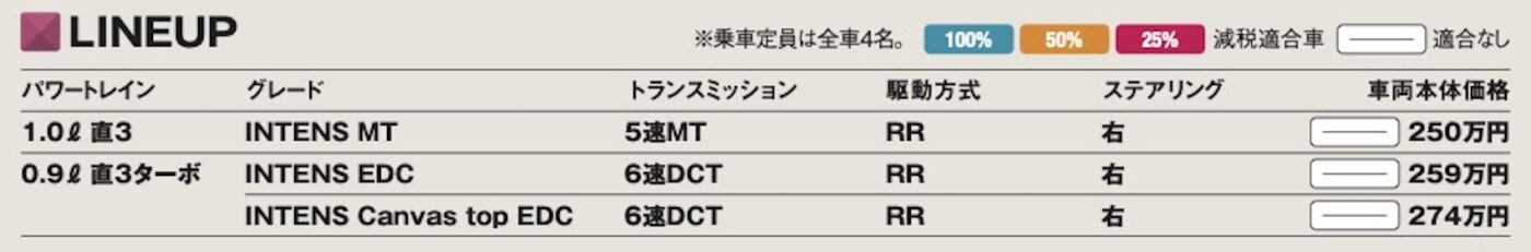 しかし〝ミッドシップ〞という語感からイメージするようなクイック感はなく、日常使いでもリラックスして運転できる。これは容易にスピンしないよう、前輪より後輪を太くしているからだ。欠点があるとすれば、ラゲッジの小ささ。荷物を積むなら2名での使用が現実的だが、だから「TWINでGO!」なのだ。