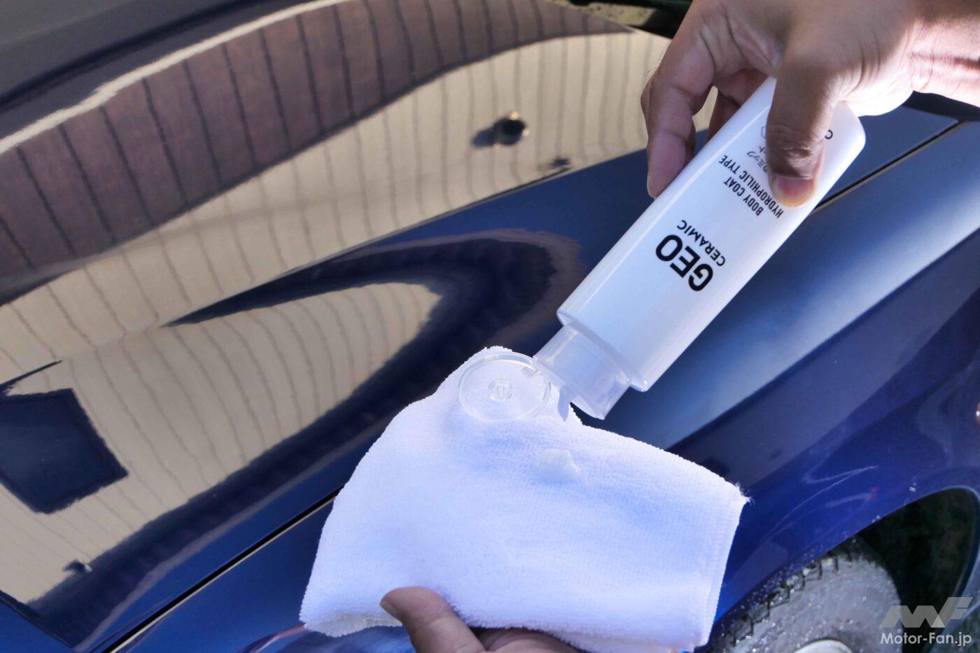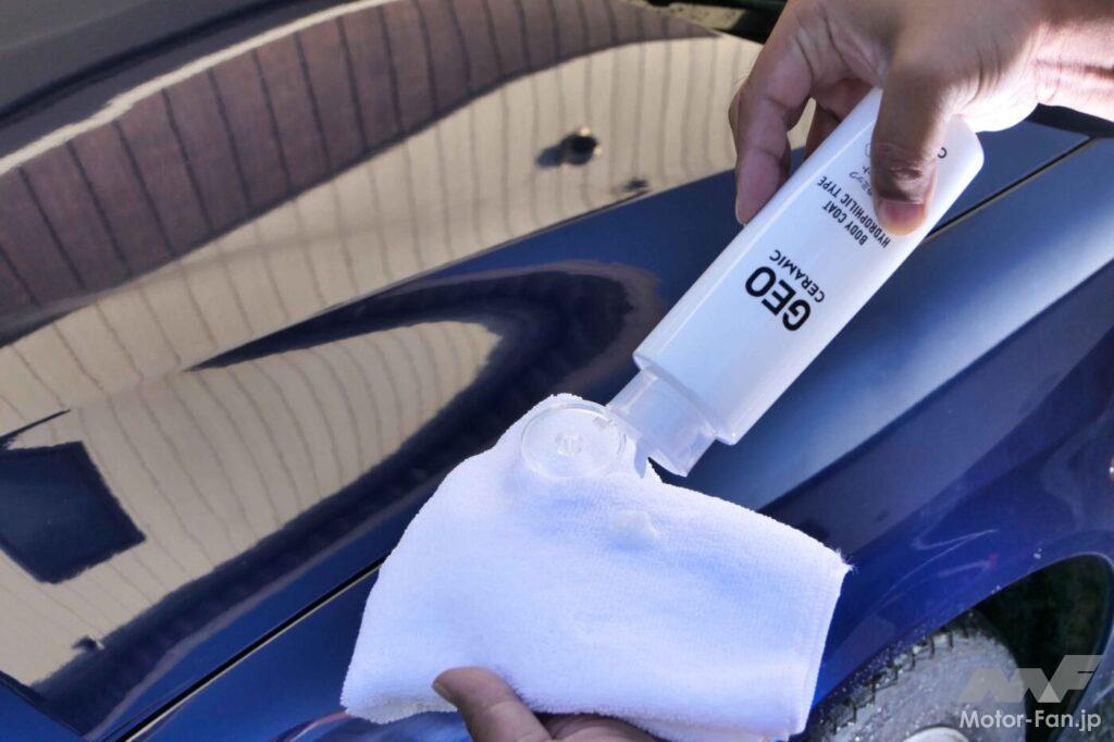 ここまでの効果を聞くと、扱いにくかったりと不安に感じる人も少なくないだろう。しかしジオセラミックのもうひとつの特徴が、誰にでも簡単に施工できること。付属のクロスやスポンジに取り、塗り込むだけで鉄壁のガード力が得られるのだ。