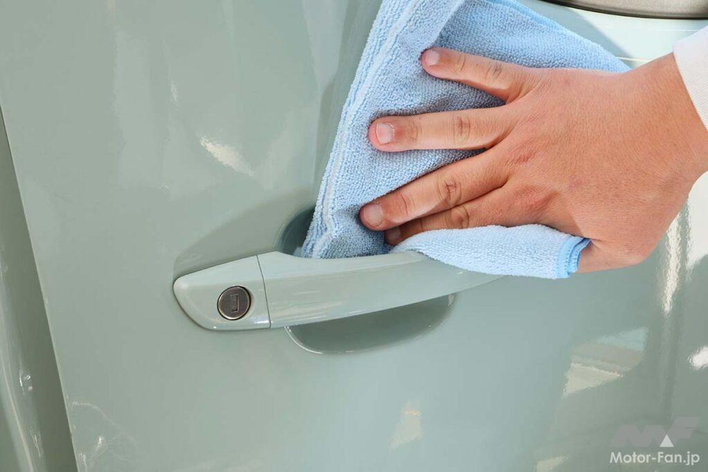 細かい箇所なら付属クロスにスプレーしてから拭き磨くと作業がラク。