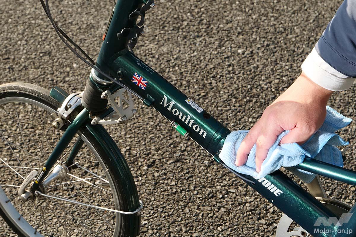 フレームなどの塗装部位はもちろん、白ボケが発生しがちなメッキや無垢の金属パーツなど、自転車やバイクでも様々な場所に使える。
