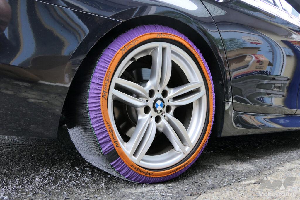 ニューレイトンからリリースされている『アイスバーン・ウインターソックス KURUMI』は、優れた耐摩耗性を誇るポリエステル布を採用した布製タイヤチェーン。金属製と比較して軽くて静か、そして取り付け簡単といいこと尽くめのタイヤチェーンなのだが、このたびラインアップを大幅に拡充。計11モデルとなり、なんと244のタイヤサイズに対応するようになったのだ。これで軽自動車からハイパフォーマンスカーまで装着が可能となったが、その取り付けやすさなどをチェックしてみた。