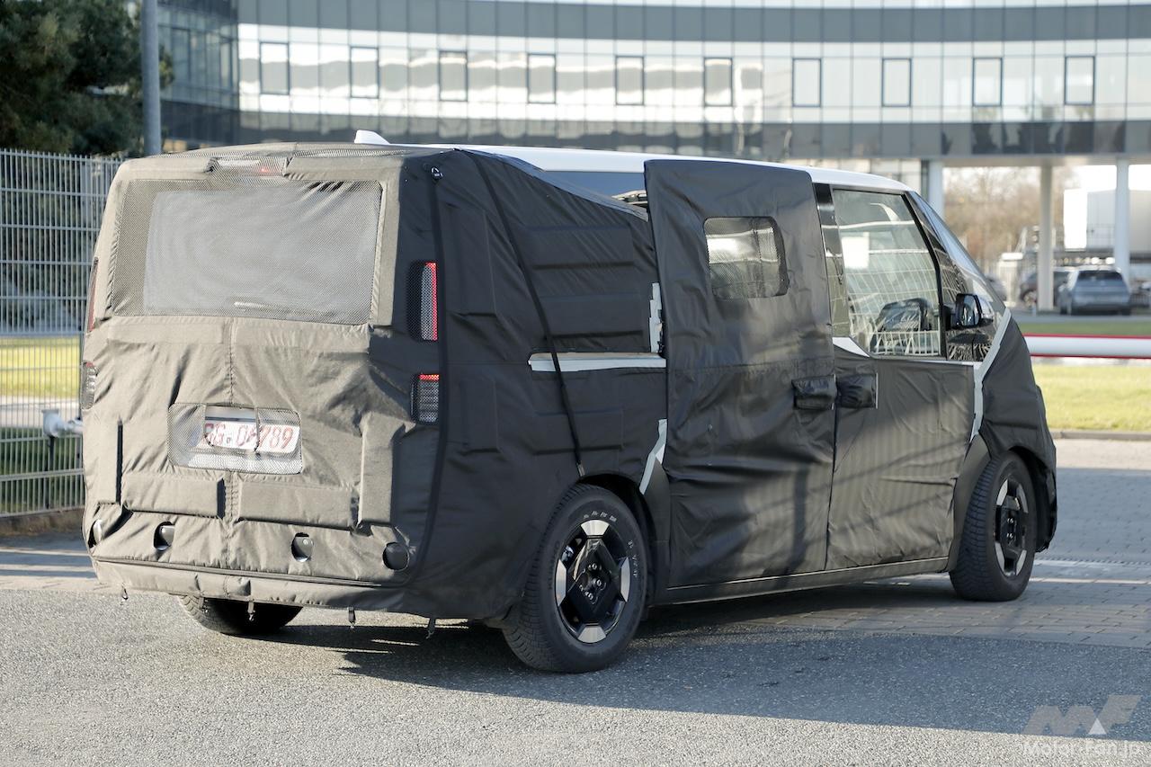 今回プロトタイプは、VW「ID.Buzz」やシトロエン「E-ベルリンゴ」電気バンを従えて出現、デザインのディテールが見えてきた。