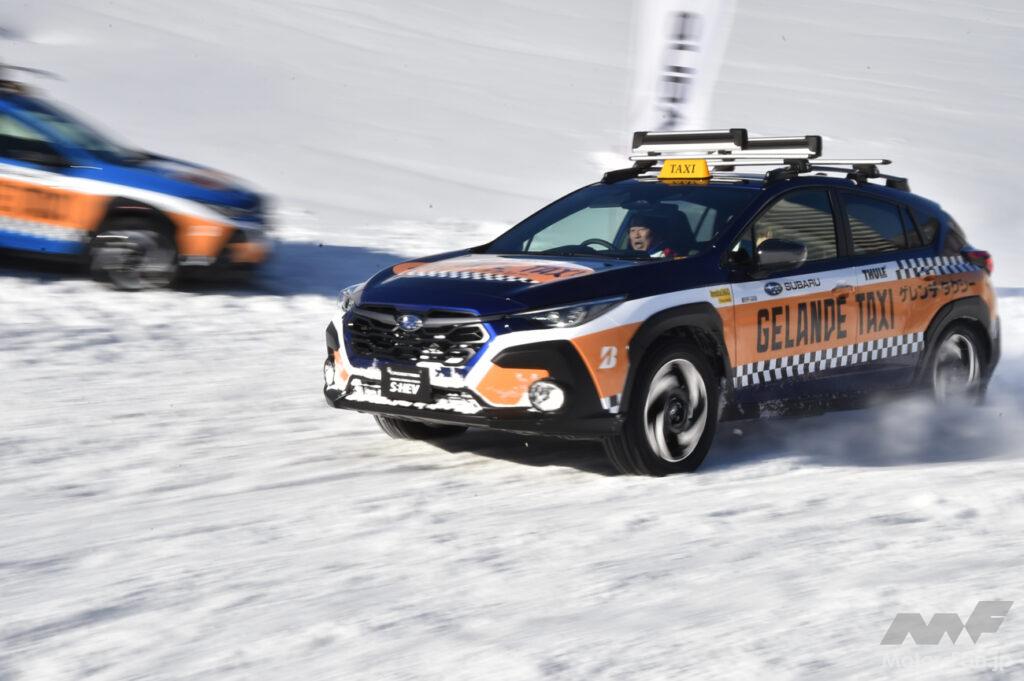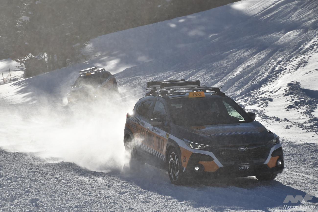 初日となった18日のゲレンデタクシーでは、スバルが先だって発売したクロストレックのストロングハイブリッドモデルであるS:HEVがメインに使われた。以前のゲレンデタクシーには無かったラインナップだけに、以前からゲレンデタクシーでハンドルを握ってきたラリードライバーはどう感じたのだろうか?