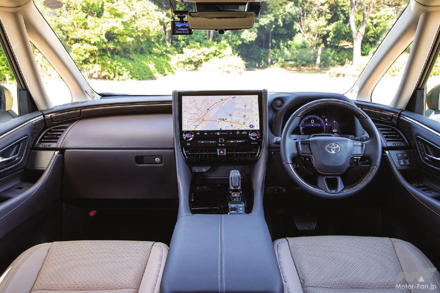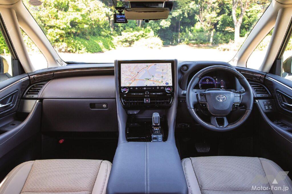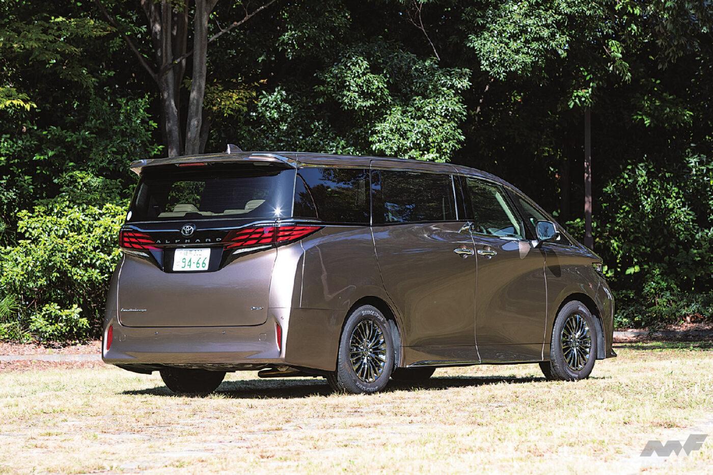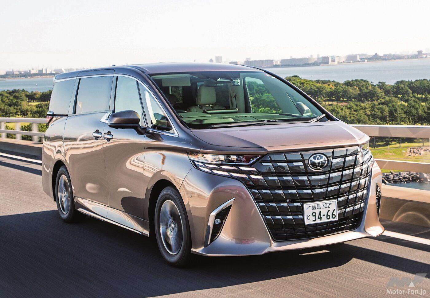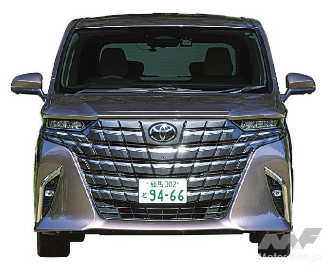 プラットフォームをTNGA GA-Kに一新したこの4代目は兄弟車のヴェルファイアとの差別化が拡大され、威風堂々としたバランスの良いスタイリングはさらに進化し、より迫力あるアグレッシブな顔つきを実現。先代比で全長こそ伸びたものの、ホイールベースや全幅は不変。骨太なプラットフォームを使うため、車内が狭くなるところを工夫して、先代同等の居住空間を確保している。