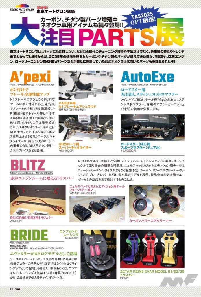老舗チューニング雑誌であるオプションの最新号では、1月10~12日に開催された東京オートサロン2025を大特集。注目のマシンやパーツなどを取り上げているほか、企画『スーパーチューンドファイル』では、ヴェイルサイド78Zなど事前情報を得ていた5台の注目マシンを事前に取材・撮影し、その詳細に迫る。