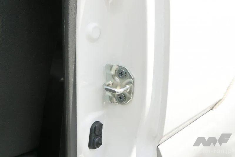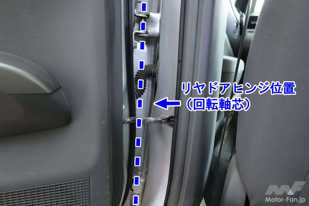 そもそもスライドドア開時は、ロック解除したスライドドア後端を外に押し出して開くため、その反対側の前端はいったん内側に引っ込む軌跡をたどる。ここにもしベンツヘムがなく、衝突時の変形でリヤスライドドア前端がフロントドアにかぶってしまったら、やはり前後のドアが開かなくなってしまう。もぐりこむことができなくなるからだ。
