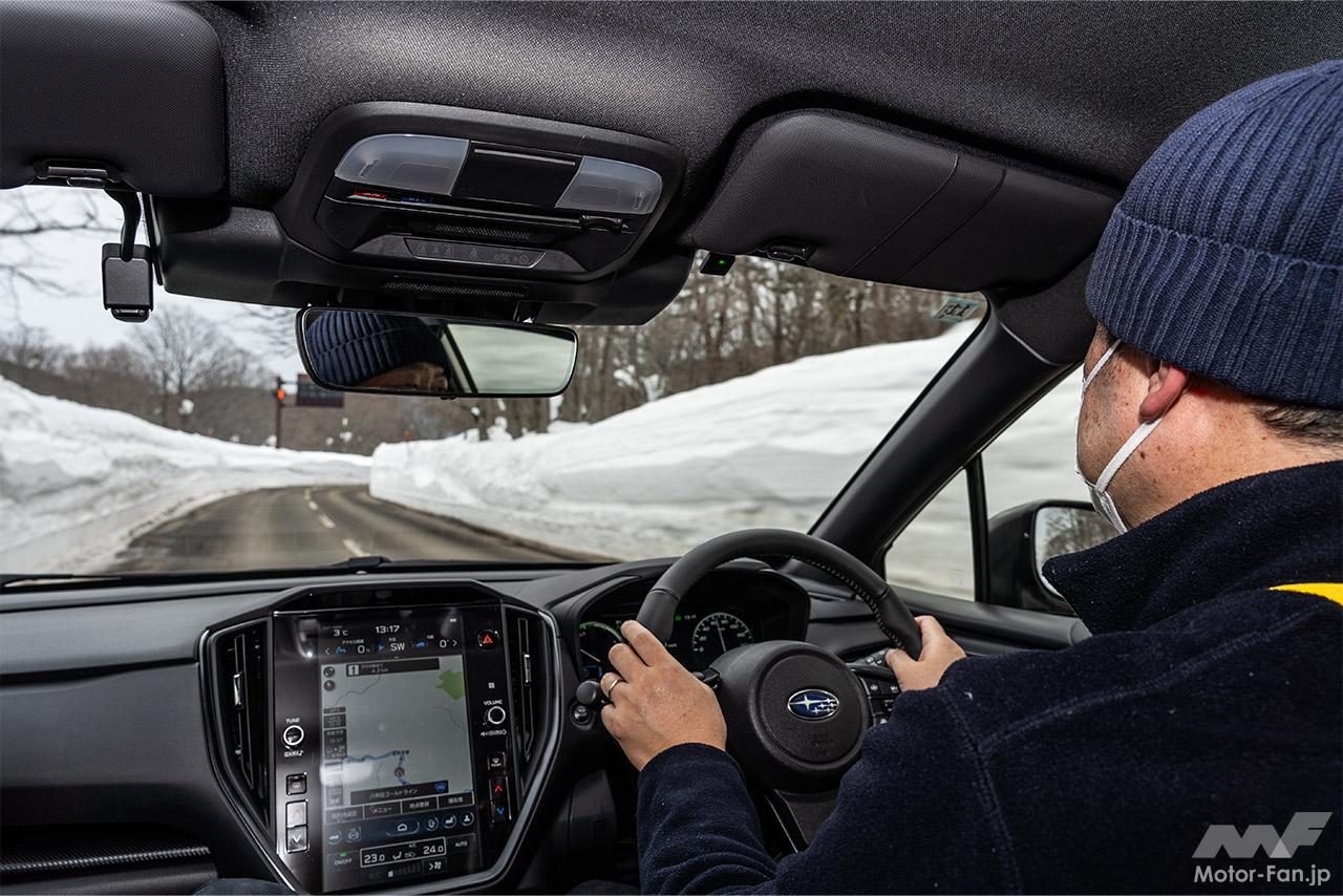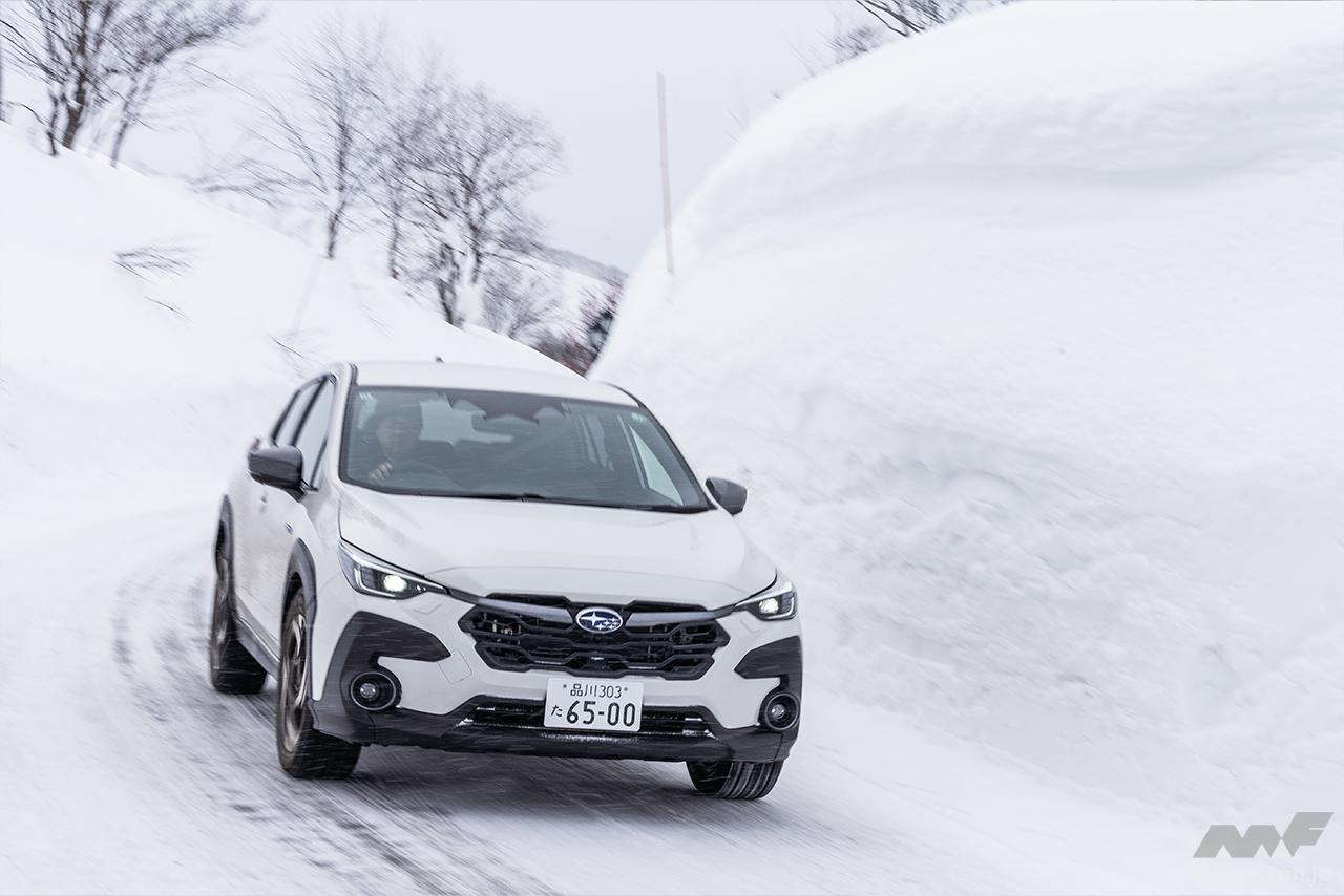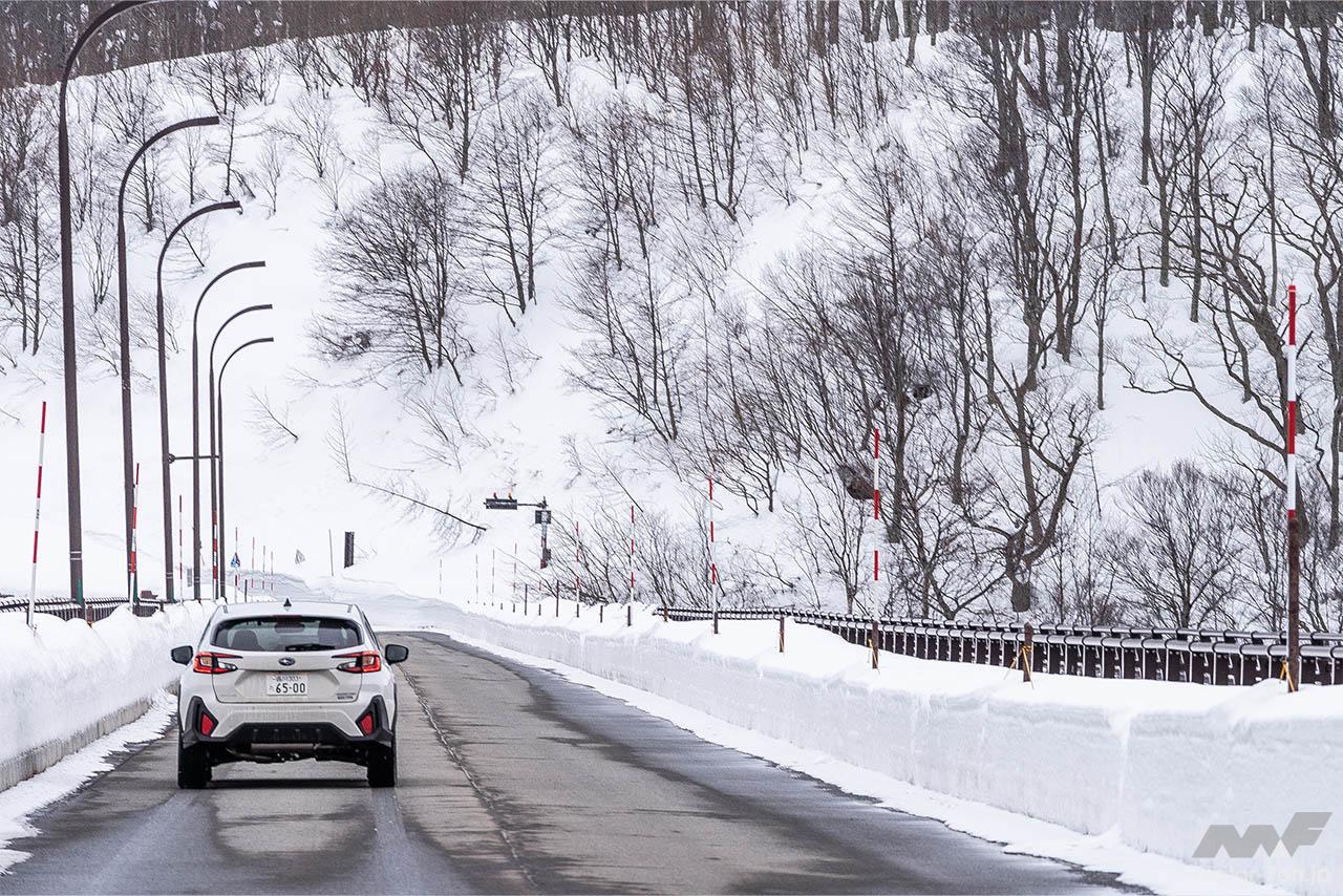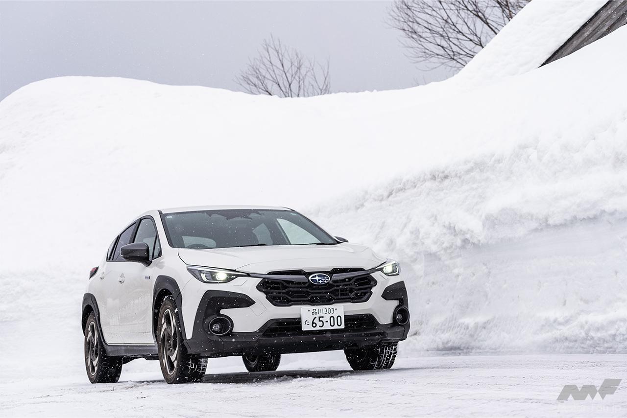 といって左右の動きやロール、ピッチに難があるわけではなく、素直だし、意のままである。全長4480mmの大きすぎない車両サイズは除雪した雪で幅が狭くなっている道では有効で、扱いやすさにつながっている。今回の試乗では気になる燃費をきちんと確認できていないこともあるが、クロストレックのS:HEV、もっと乗っていたいと感じさせる新顔だ。