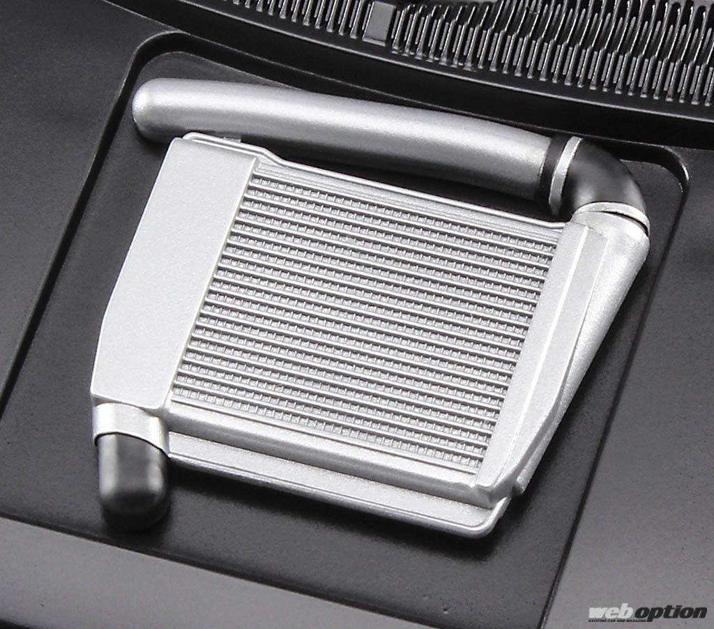 GTI-Rのチャームポイントでもあるエンジンバルジ内のインタークーラーは、単体でパーツ化して高精度化。ハセガワの変態っぷりが最大限発揮されたポイントと言えるだろう。